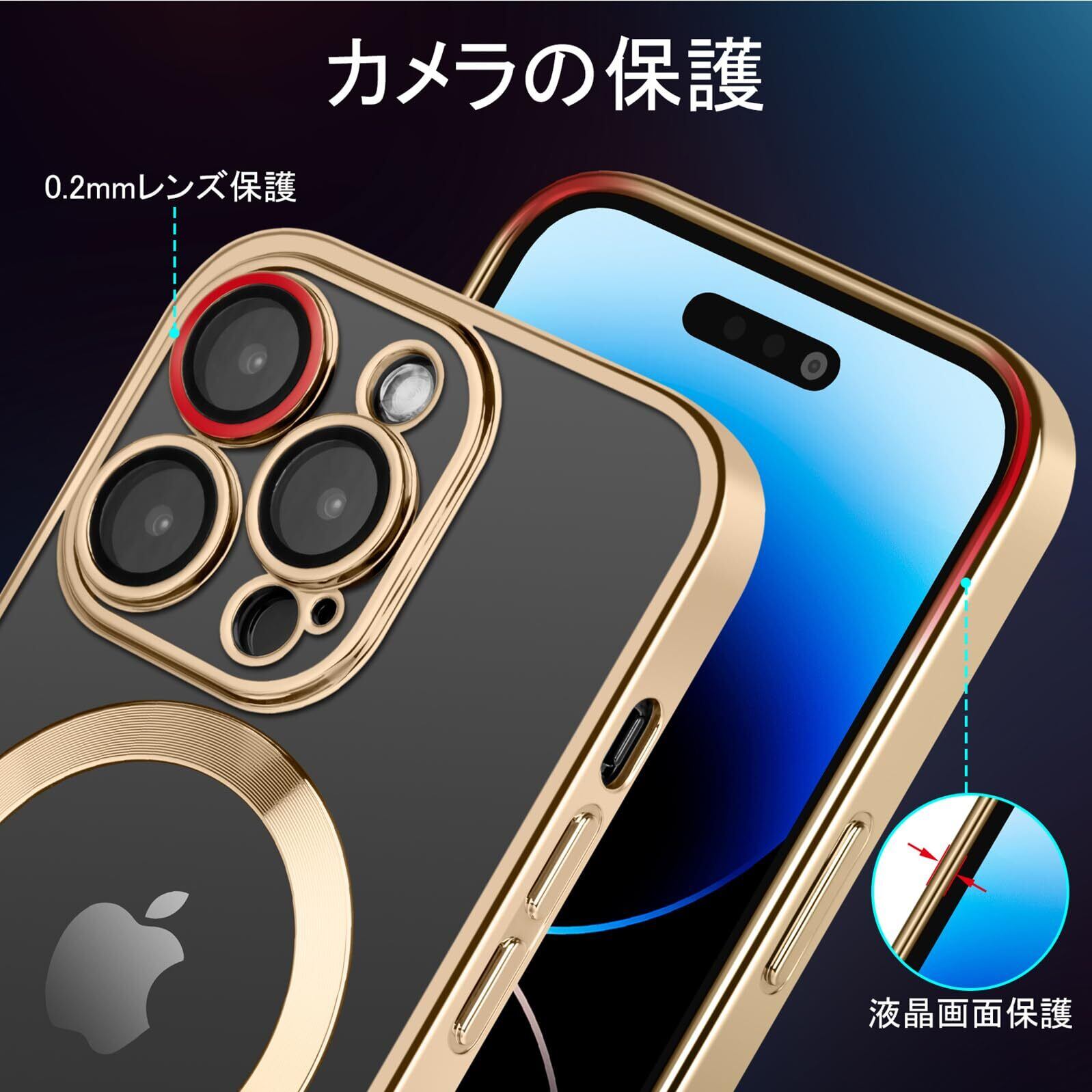 iPhone 13 Pro 用 ケース 黄変防止MagSafe対応 磁気充電 傷に強い背面 耐衝撃 米軍MIL規格 6.1インチ カバー 2023年新型 iphone13プロ ケース レンズ保護 ワイヤレス充電対応 傷に強い背面アイフォン 13 Pro 用 ケース (ゴールド)