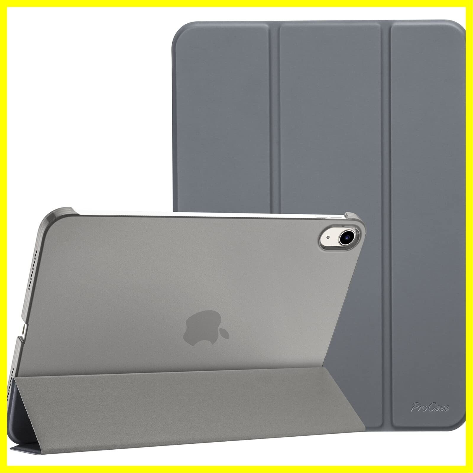 ProCase iPad 10世代 ケース 2022 10.9インチ A2696 A2757 A2777 軽量 耐衝撃 三つ折り スタンド スマートカバー(グレー)