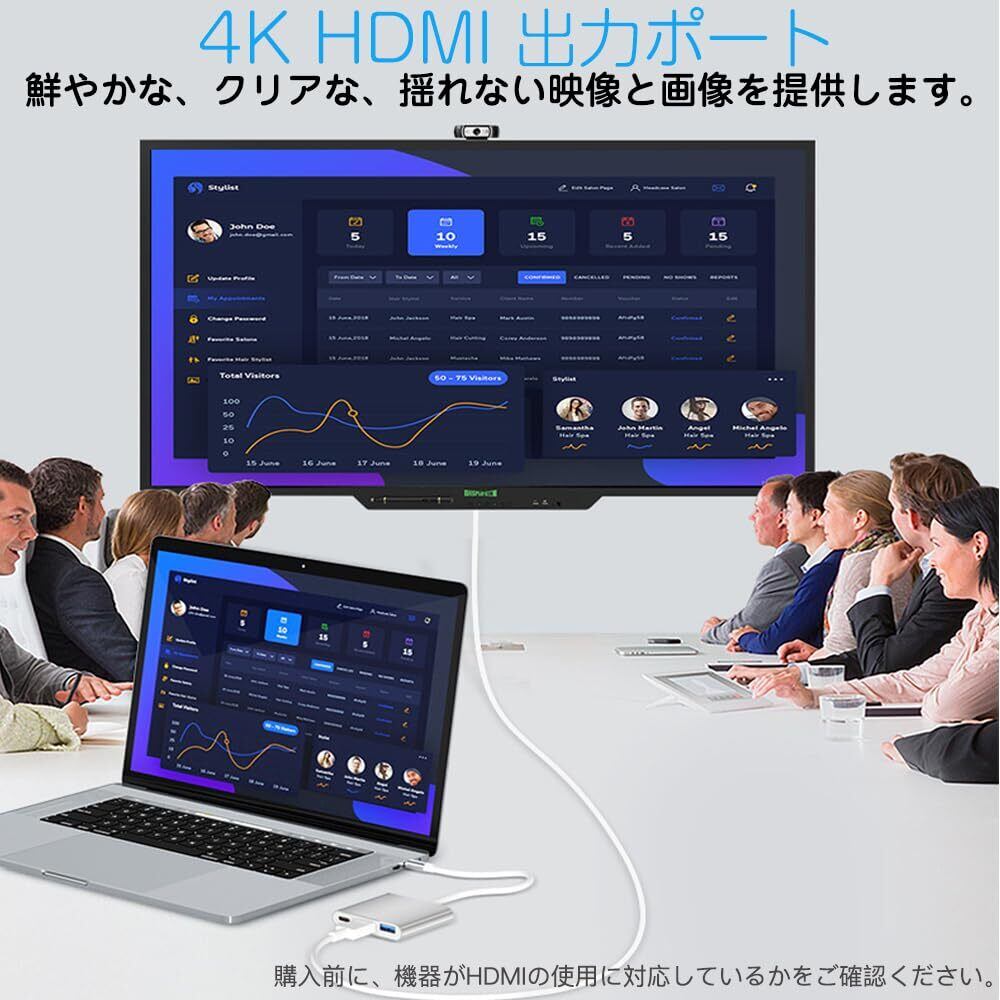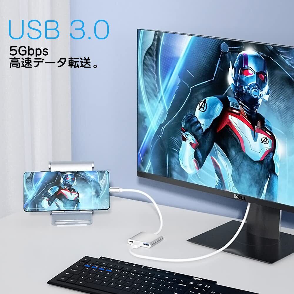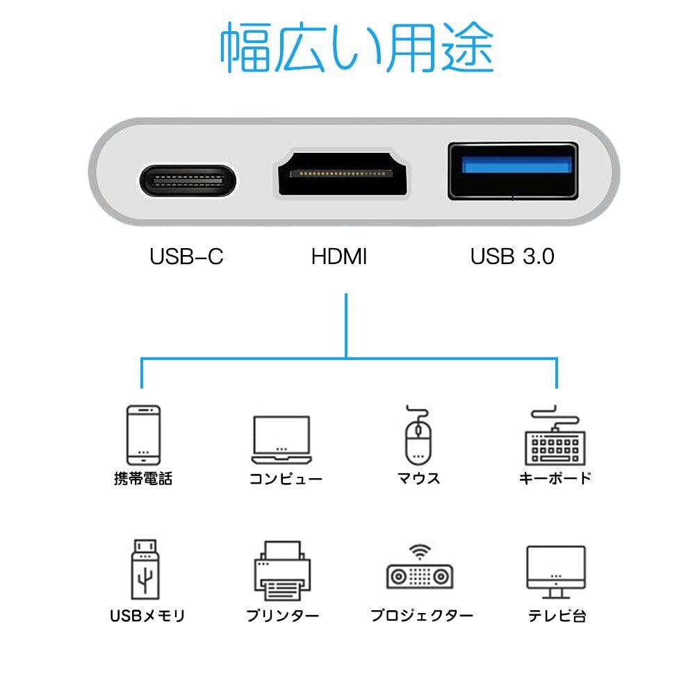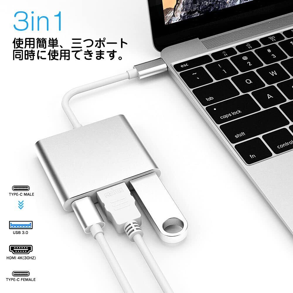 LIANHATA 3-in-1 USB Type C HDMI 変換 アダプタ 60W マルチポートデバイス USB 3.0ポート+HDMIポート+Type c テレビ出力 4K解像度サポート 1080P 急速PD充電 UHDコンバータ シルバー iPad Pro/MacBook Pro/Surface Go/Air デバイス対応
