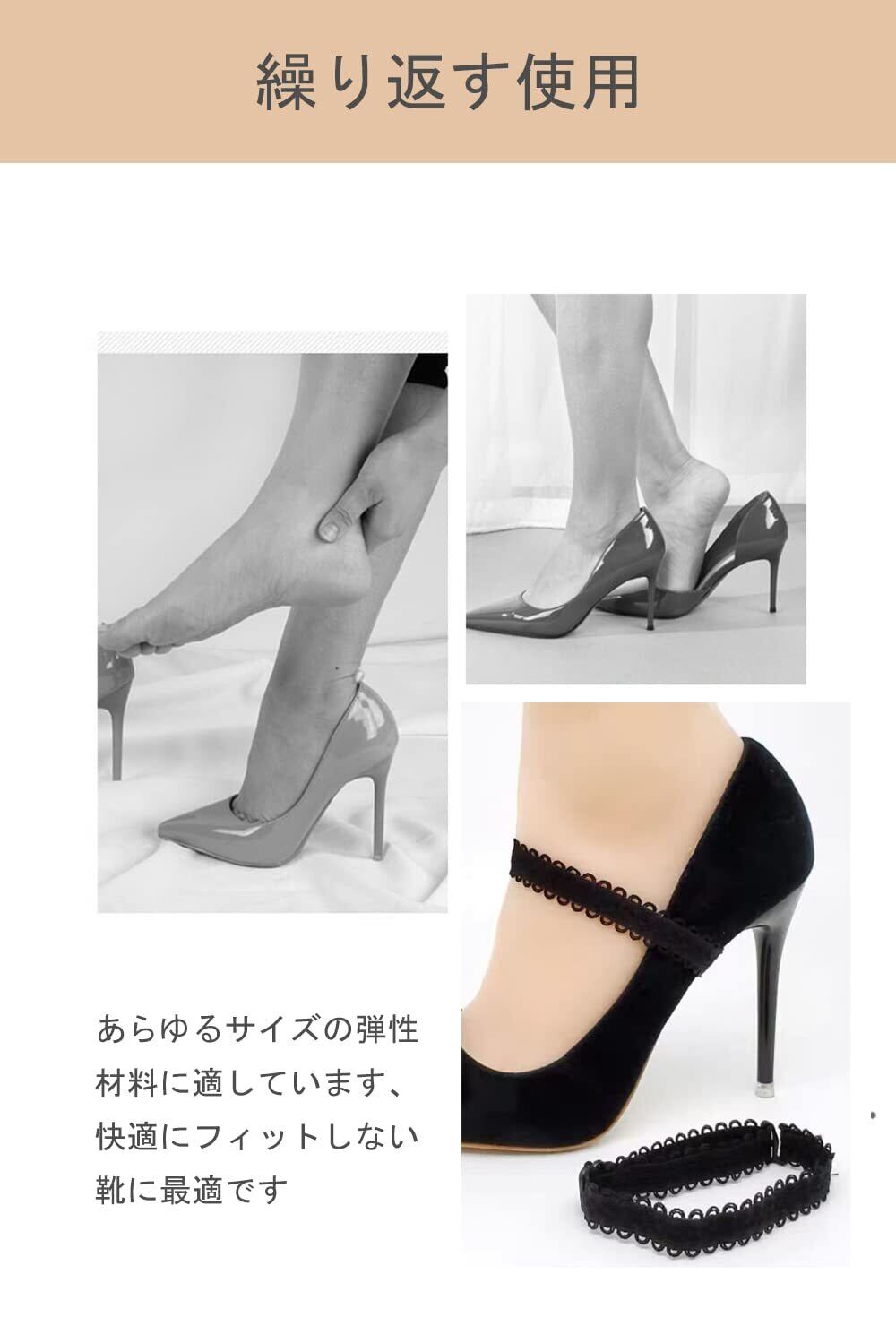 【脱げ防止】滑りやすい耐摩耗性、良好な安定性を防止します 、ストラップなしであなたの靴をDIYするのに使用でき、靴の脱落防止に役立ちます。靴が足につかない、落ちやすい、滑りやすいなどの問題を緩和します。