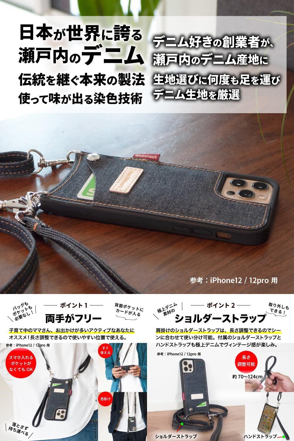 [ニードネットワーク] 日本が誇るデニム iPhone16 用 スマホ ケース ショルダー ショルダー付き カード入れ ショルダータイプ スマホショルダー スマホショルダーストラップ