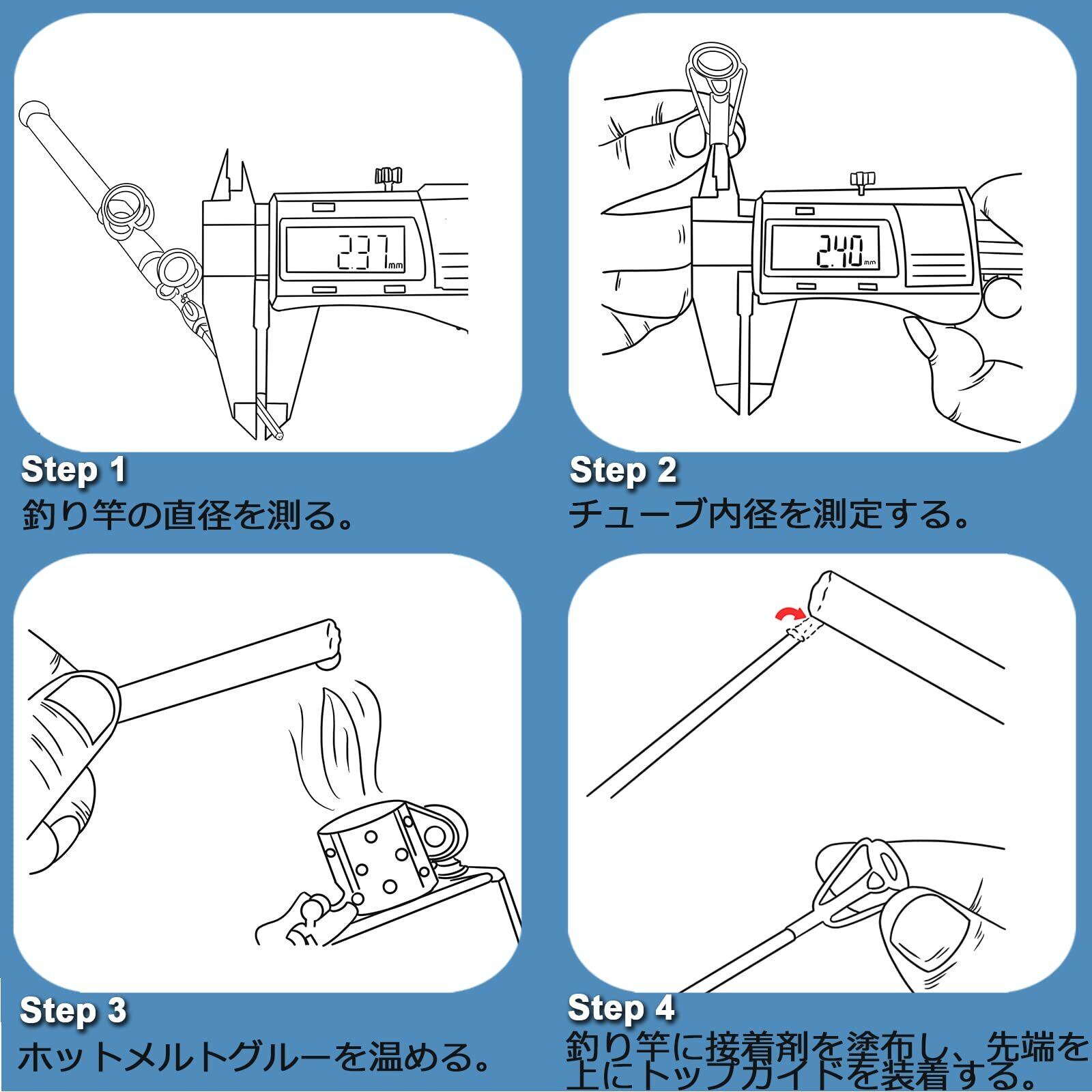 【高価な釣り竿を簡単に修復】釣り竿のトップガイドリングが破損? 新しいロッドを買う? いいえ、このトップガイドのセットさえあれば、高価なロッドに新しい息吹を吹き込むことができるのです。 スムーズなトップガイドをロッドの底に沿って並べ、ラインをコントロールしやすく、絡みにくくなります。