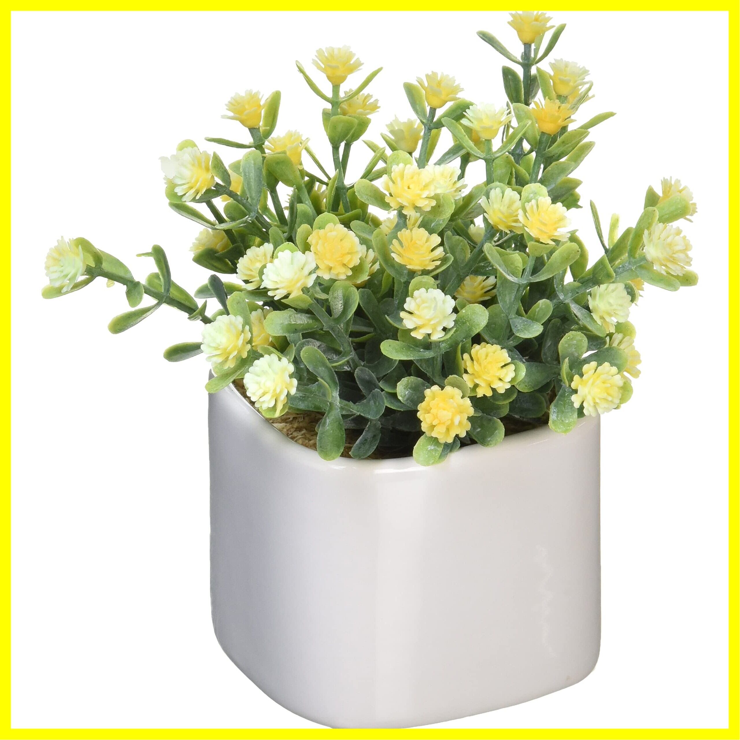 ケーアイジャパン 人工観葉植物 デイジーYE Φ13×H12.5cm (かわいい 陶器のキューブポット)
