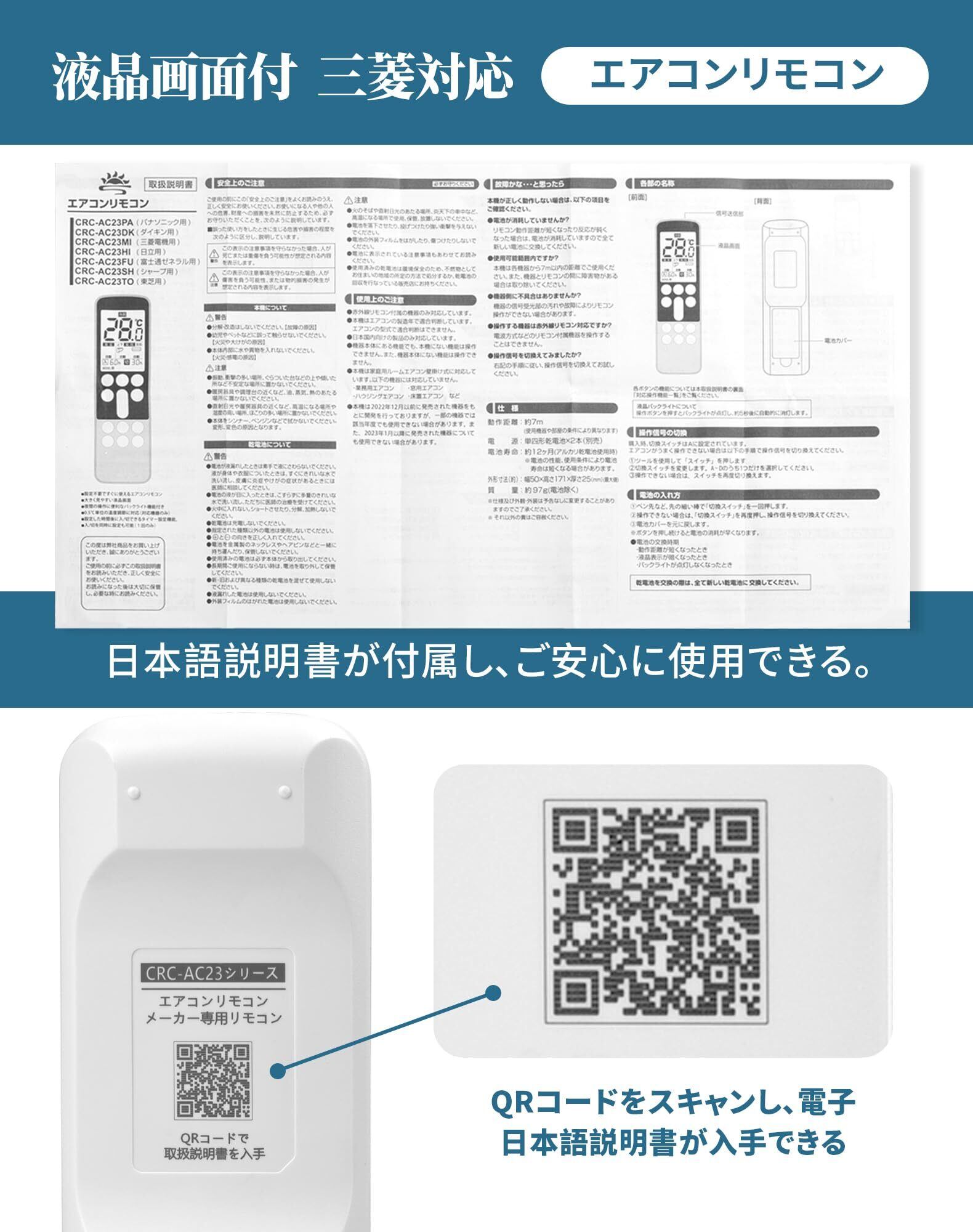【対応機種】三菱エアコン用の互換リモコンです。2000年製~2022年製の家庭用エアコンにのみ対応でき、業務用エアコン、窓用エアコン、ハウジングエアコン、床置きエアコンなどについては動作検証をしておりません。 ※これらのエアコンリモコンはエアコンの製造年の適合によって判断しています。エアコンの型式で適合判断はできません。