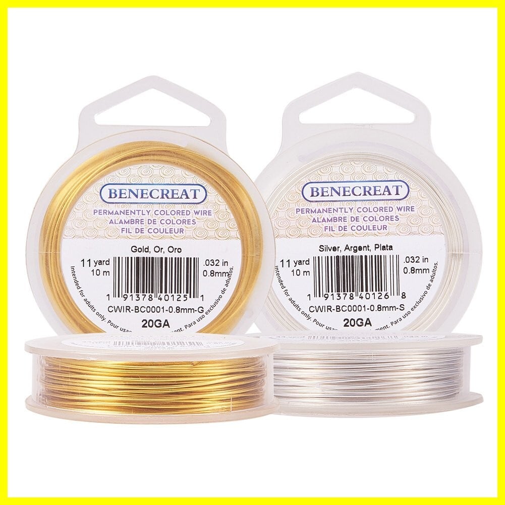BENECREAT 2巻きセット0.8㎜アクセサリーワイヤー アートワイヤー 光沢 変色防止 クラフト銅線 ジュエリー作り 手作り ゴールド&シルバー
