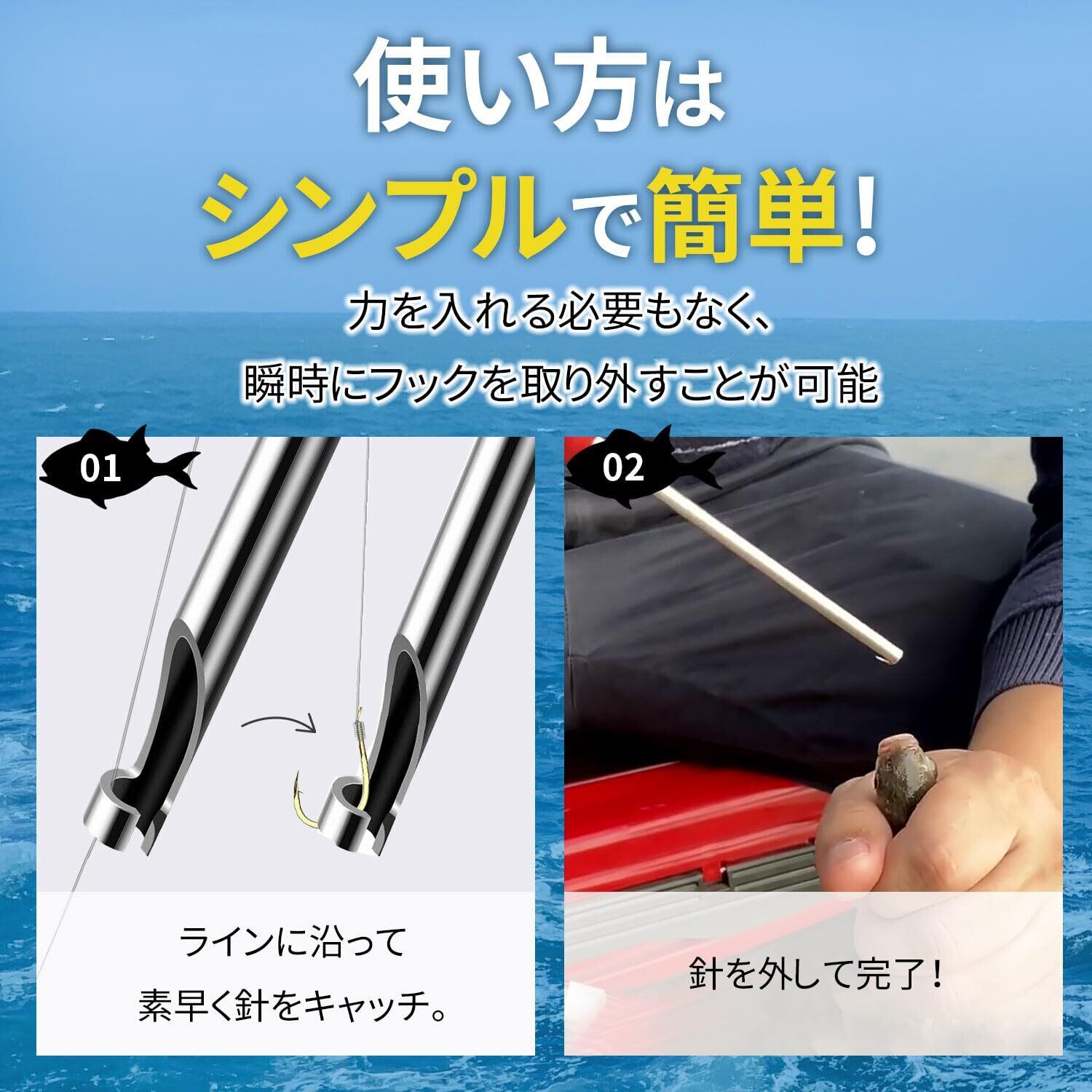 収納式のフックリムーバー(フックリリーサー)は釣り針を外すのに最適なツールです。