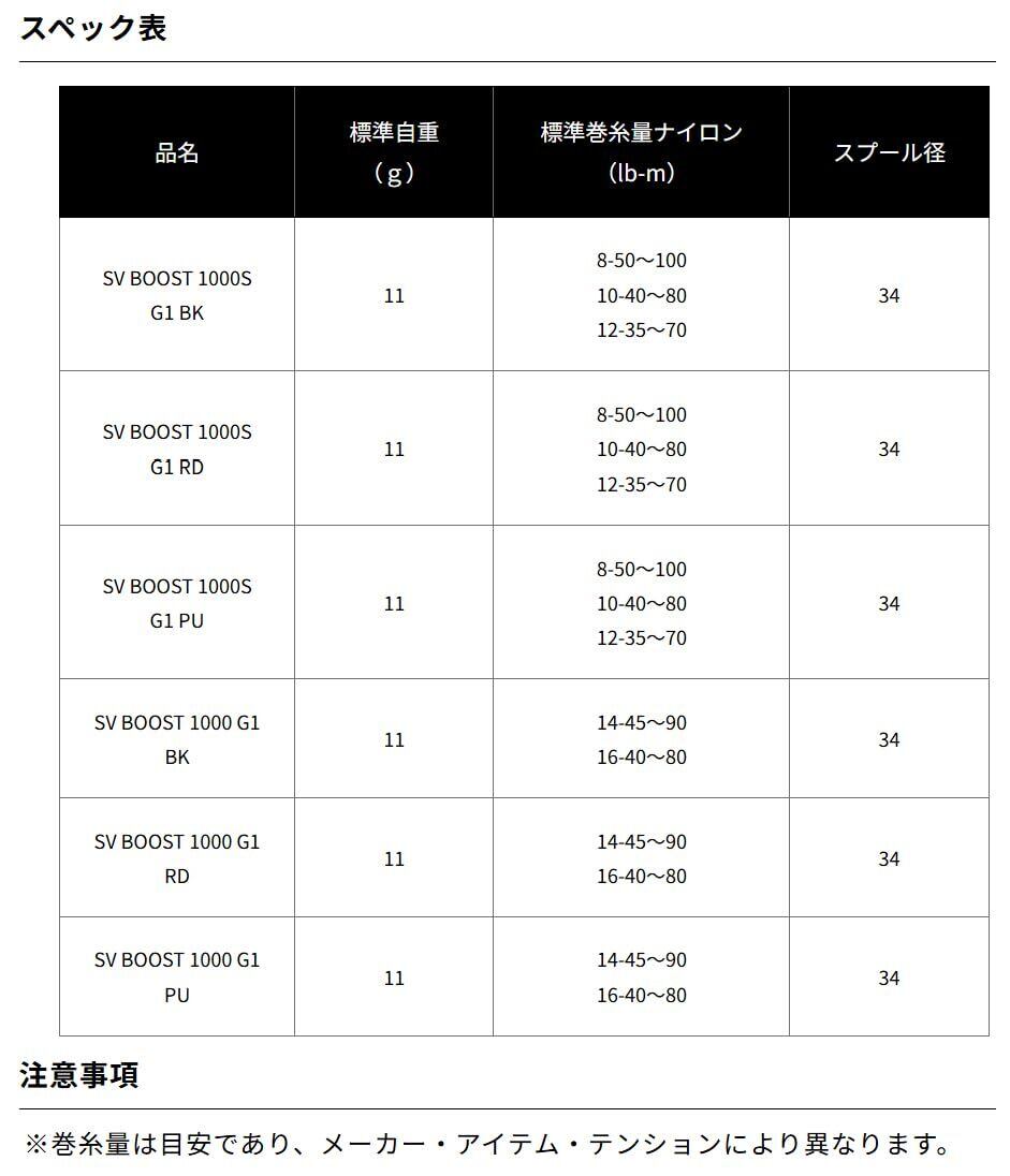 標準自重:11g / スプール径:34mm / G1ジュラルミン製