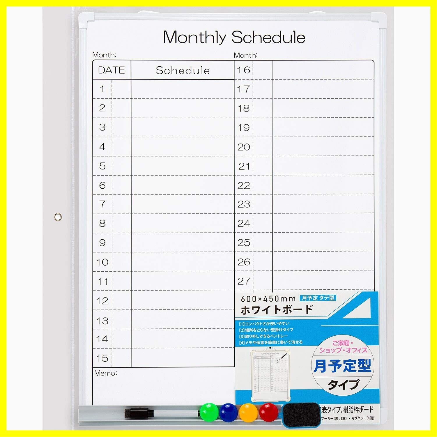 サンケーキコム ホワイトボード 樹脂枠 月予定 タテ型 450mm×600mm WB-6045-MT