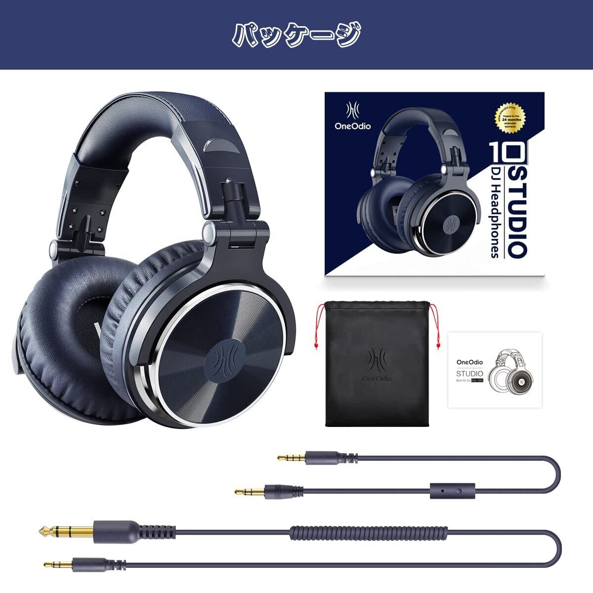 OneOdio Pro10 ヘッドホン有線 50mm ドライバー 3.5mm/6.35mm両対応 ハイレゾヘッドフォン 折りたたみ式 モニター/DJ/ゲーム/DTM/楽器練習 着脱式 ケーブル2本付き