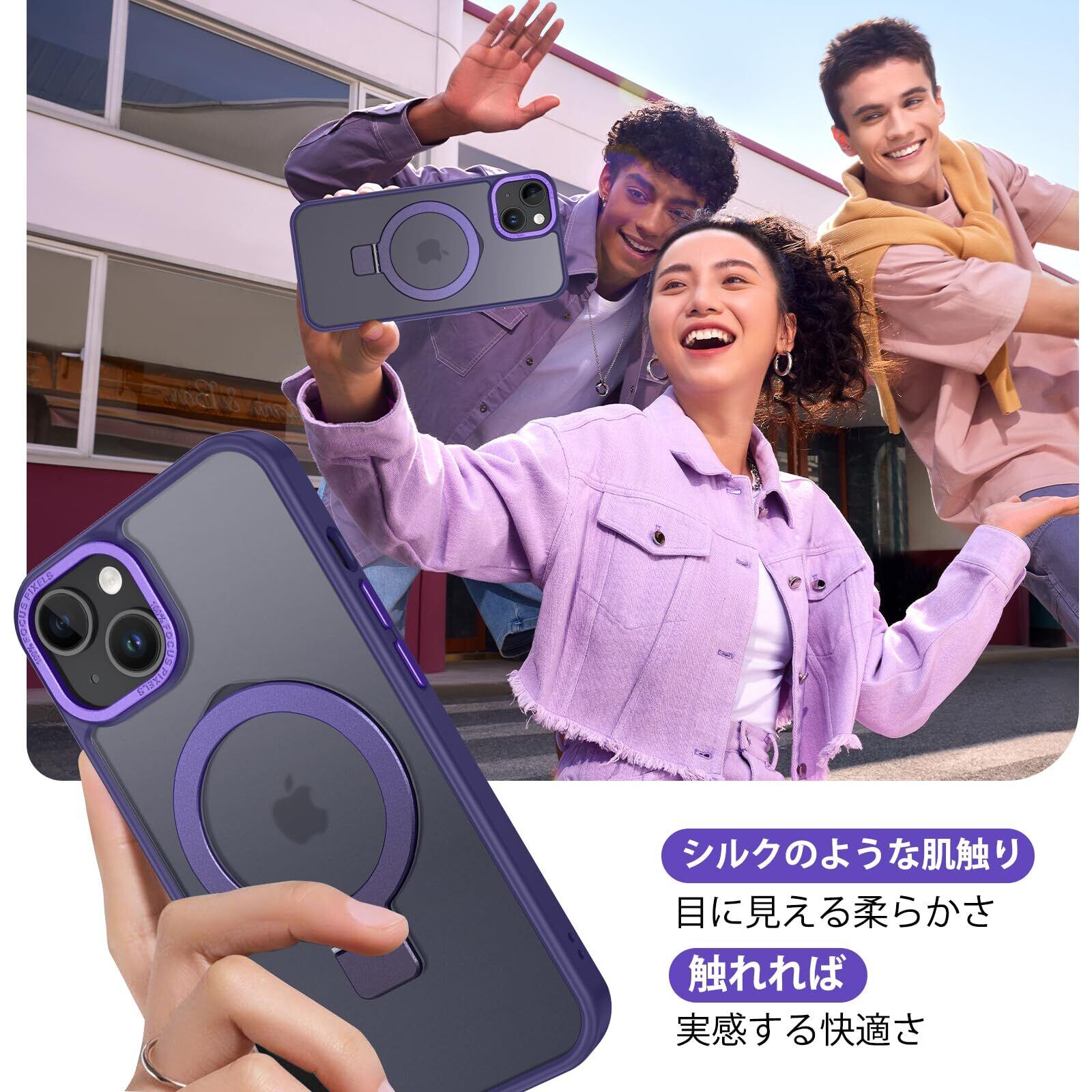 DUEDUE iPhone 13 Mini ケース MagSafe対応 アイフォン13mini ケース マグネット搭載 スタンド機能 120°開閉可能 ダークパープル 指紋防止 耐衝撃 一体型 薄型 車載ホルダー対応 ワイヤレス充電 全面保護