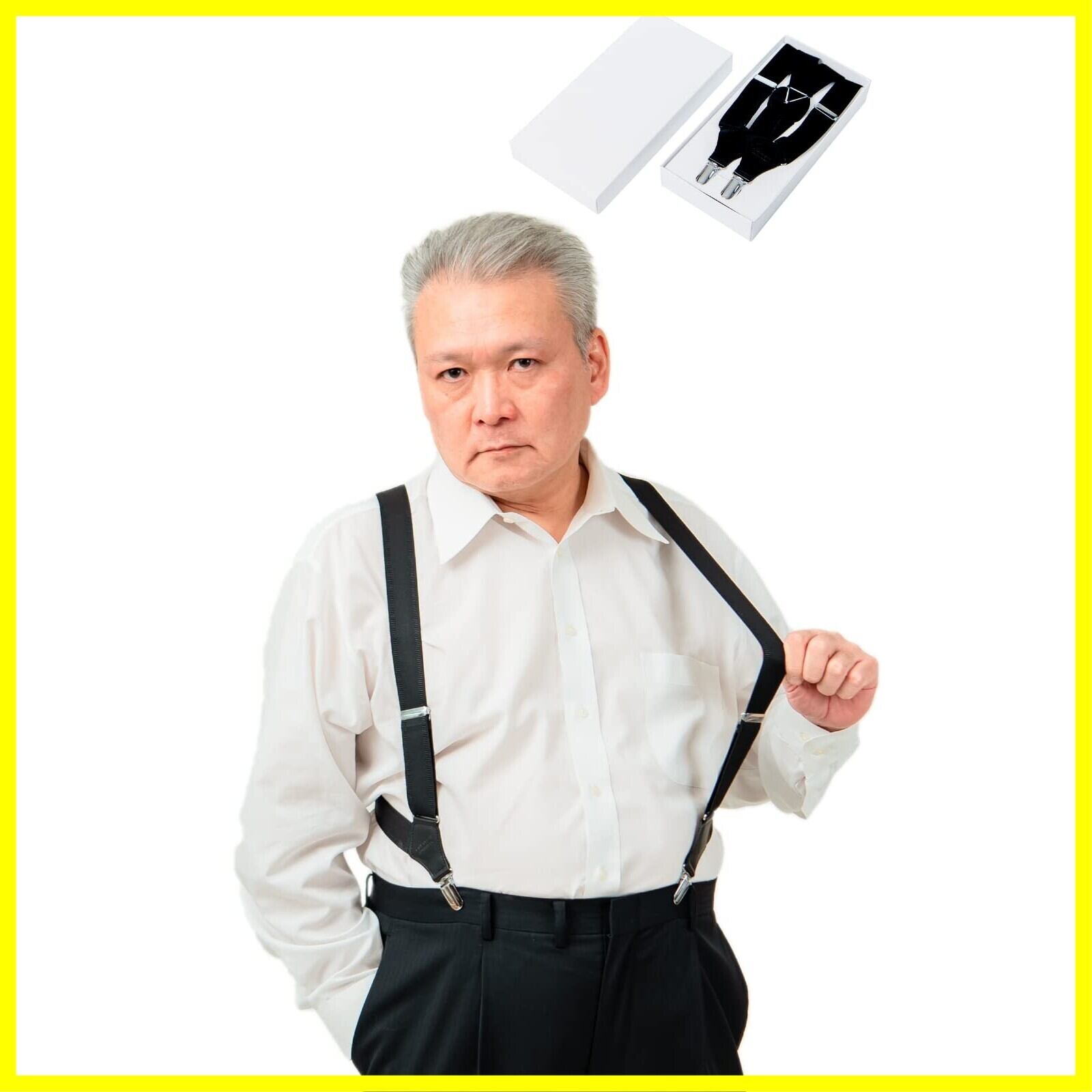 【楽に着脱可能&見えづらさ】 2点留めのホルスター型サスペンダーなので、着脱が簡単でトイレの際でも楽に脱げます。また、サイドに留め具を留めることが出来る為、上着のボタンが開いていてもサスペンダーが見えにくいです。(前面に留め具を付けることで、上着を着てもサスペンダーを見せることもできます。)