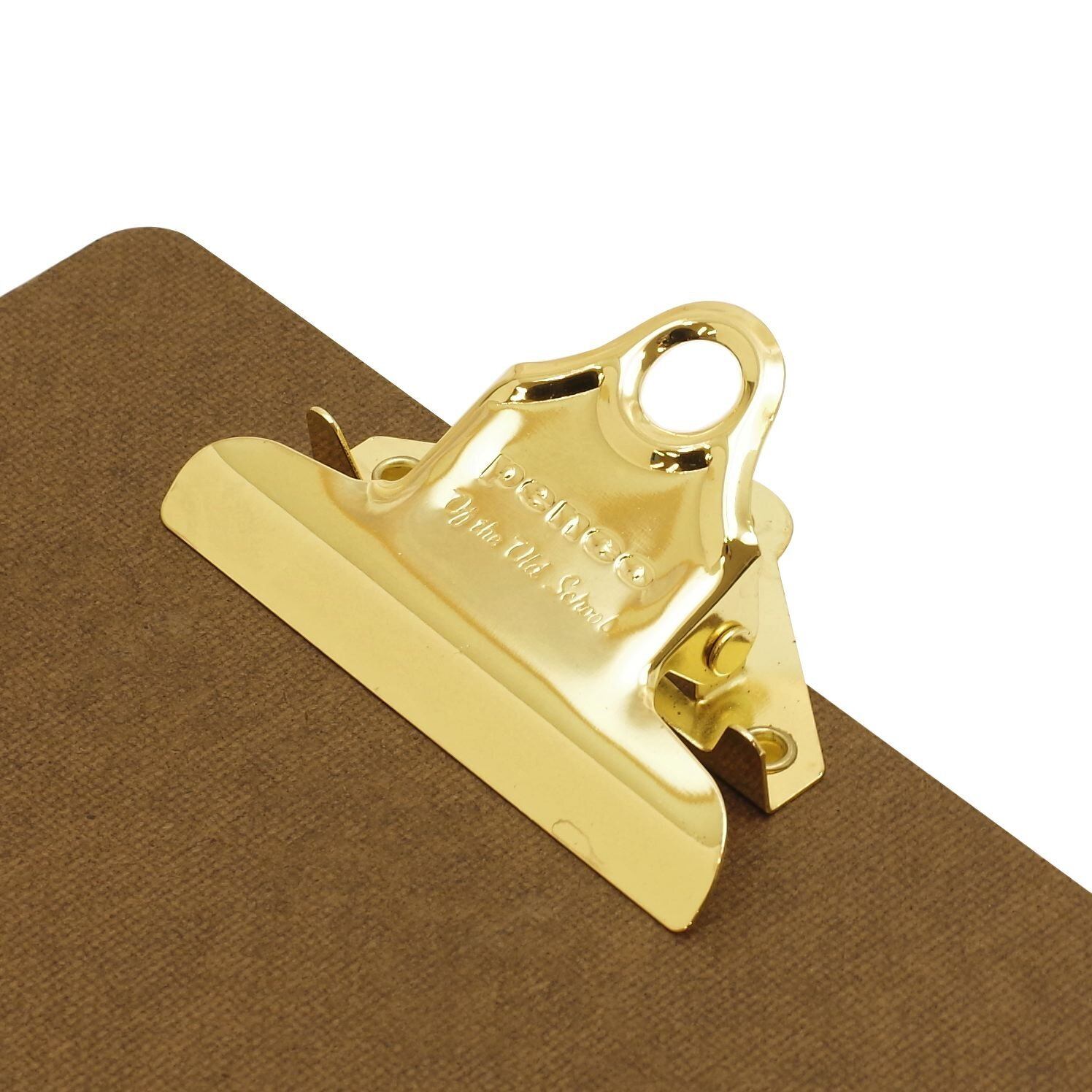 オフィスの定番、大人気クリップボードにゴールドが登場。アメリカ映画にそのまま出てきそうな昔ながらのスタンダードな形。がっしりとした金属製のクリップは強力で1度書類を掴むと離しません。こちらはデスク脇のメモ取りや伝票挟みなどに大活躍です。結婚式の芳名帳(ゲストブック/A5)を挟むバインダーとしても人気です。