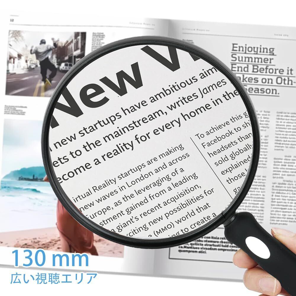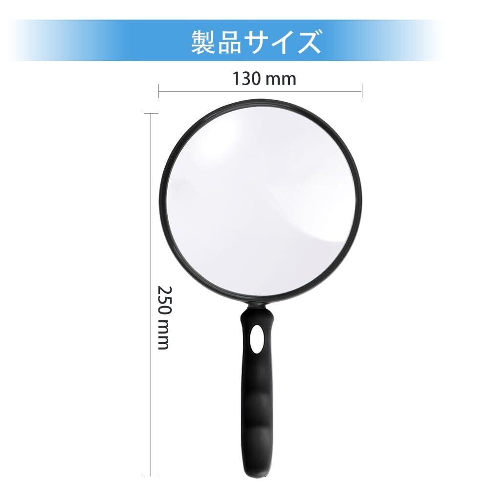 手持ちルーペ 拡大鏡 大型 虫眼鏡 レンズ径130mm 2倍拡大 見やすい 携帯便利 ソフトシリコングリップ 滑りにくい 高齢者 地図 雑誌 新聞 読書 検査用