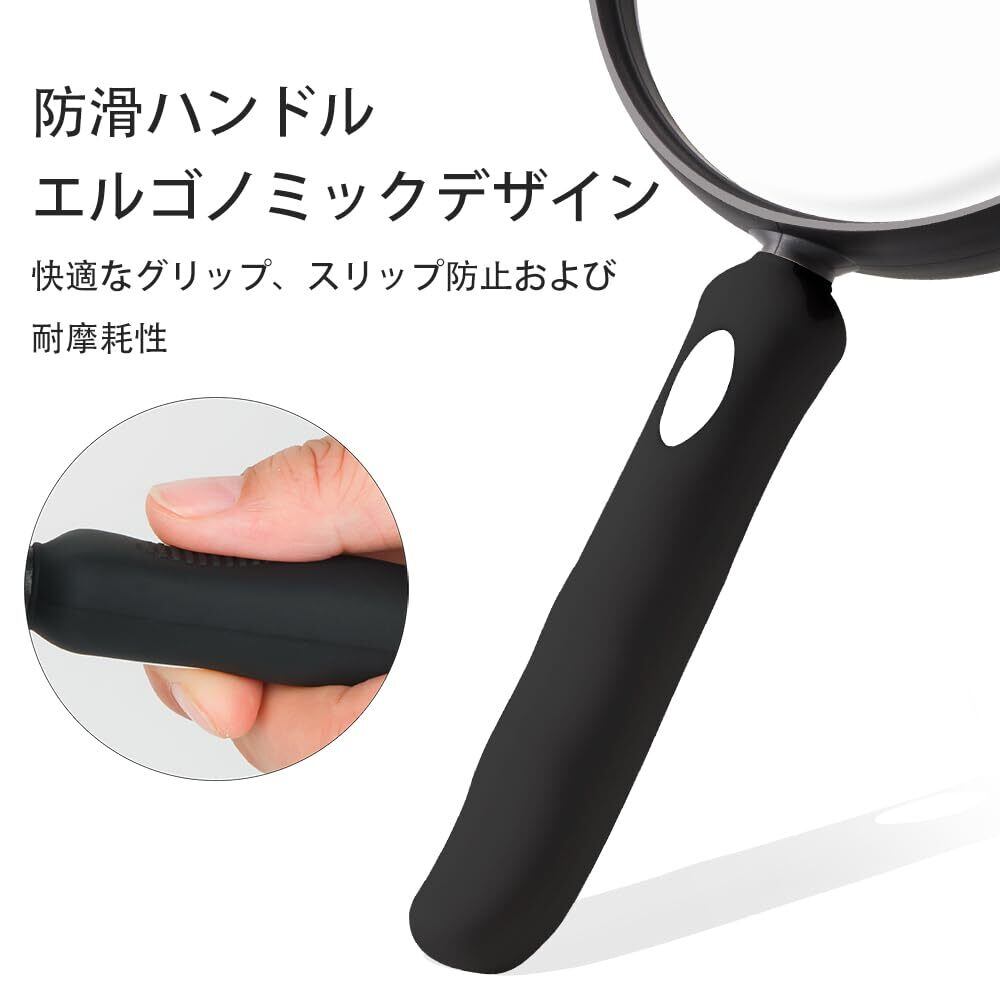 【上質な家での使用に最適】:シンプルでエレガントなデザインで、部屋の雰囲気に溶け込むハンドヘルド拡大鏡。有機ガラスレンズを用いた軽量化設計(従来品より約40%軽量)を実現。片手で操作しても疲れにくく、自宅で快適に文字を読むことができます。レンズを保護する専用収納袋と超微細繊維クリーニング布が付属し、クリーニングや保管が簡単になります。常に清潔な美しさを維持し、予期しない傷や汚れからルーペを守ります。