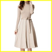 上品な大人の女性を演出してくれる大活躍間違いなしのニットワンピースです。共生地のリボンベルト付きの ウエスト切り替えデザインでスタイルアップ効果もあります。