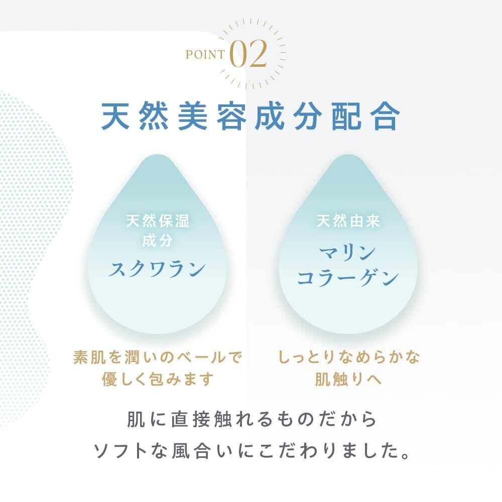 「保湿効果」「肌へのやさしさ」「清潔さ」をサポートする天然美容成分を配合。(スクワラン、コラーゲン、涙に含まれる抗菌成分)