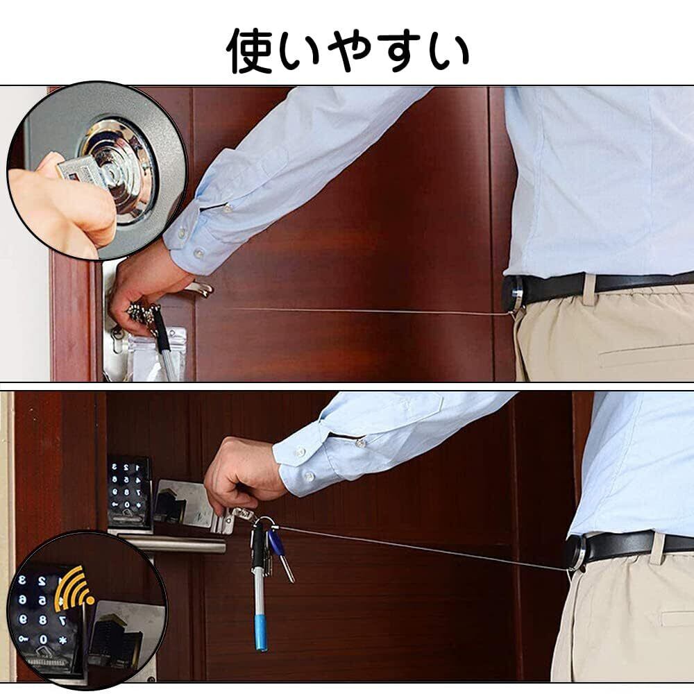 【自由に収縮】最長約30-38cmまで引っ張ることが可能ですので、使用時は製品を外す必要がありません、バッグ、ベルトループなどに簡単に着脱可能。