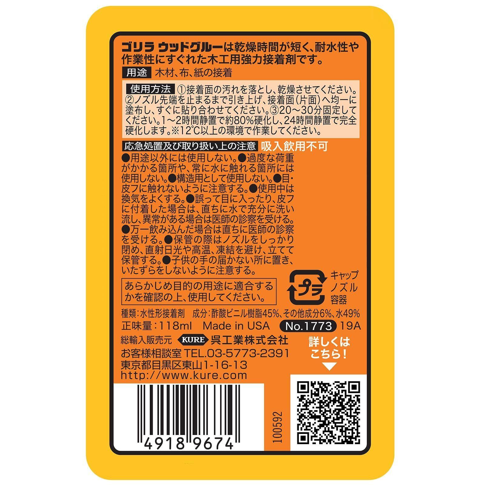 KURE(呉工業) ゴリラ ウッドグルー 118ml 木工用強力接着剤 1773