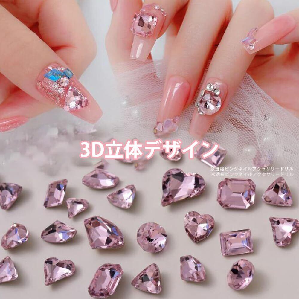 [GOODCHI] ネイルパーツ ピンク オーロラストーン アクリルストーン ネイルパーツ キラキラ クリスタル ハートストーン ラインストーン キュートハート型 8mm 11mm 50個 ネイルストーン