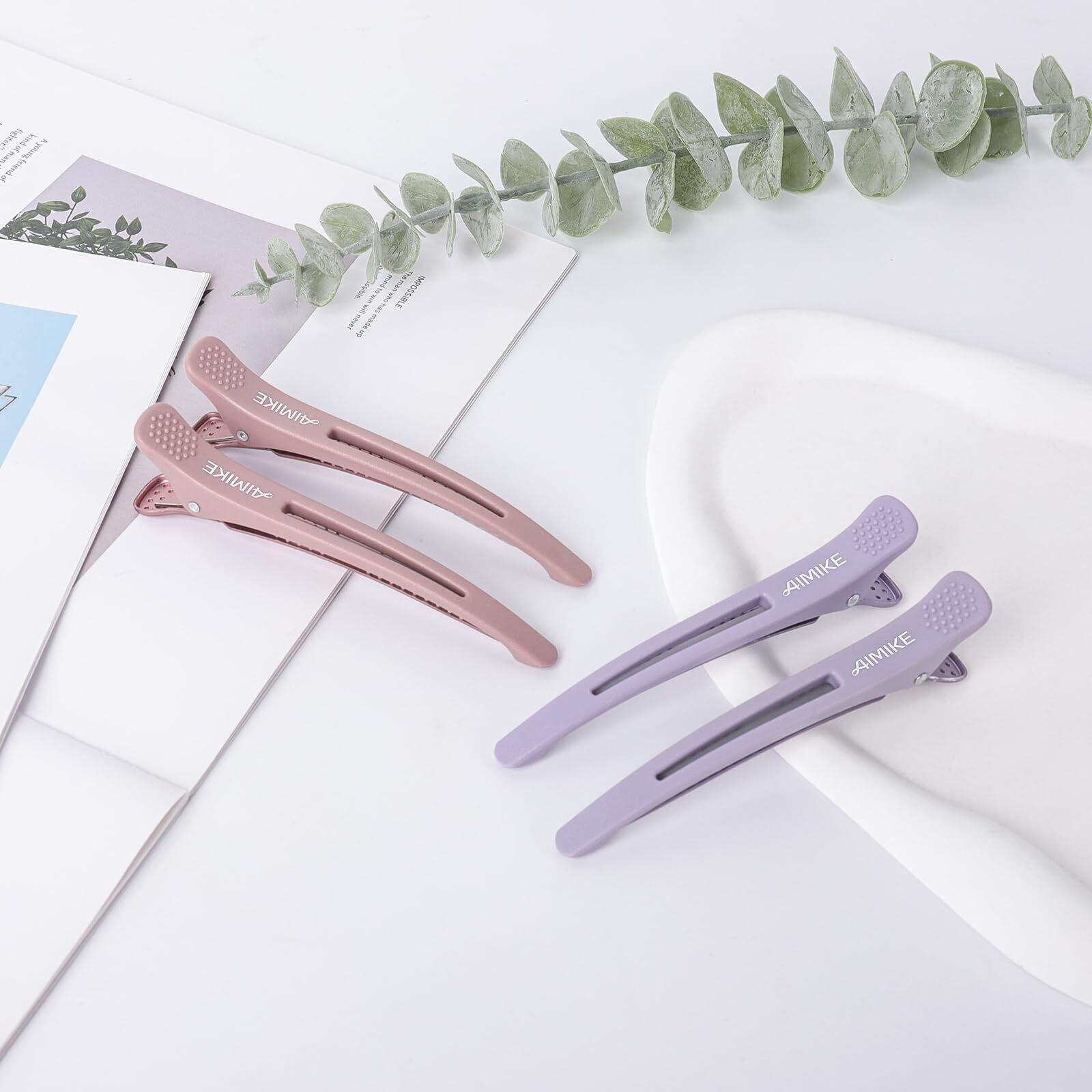 AIMIKE 4本セット ダッカール 美容師 ヘアクリップ 前髪クリップ ダッカール 跡がつかない クリップ しっかりとまる ダッカールピン ブロッキング 髪留め 強力 ダッカール 大きめ 滑りにくく カールクリップ 散髪用クリップ セルフカット ピンク、パープル