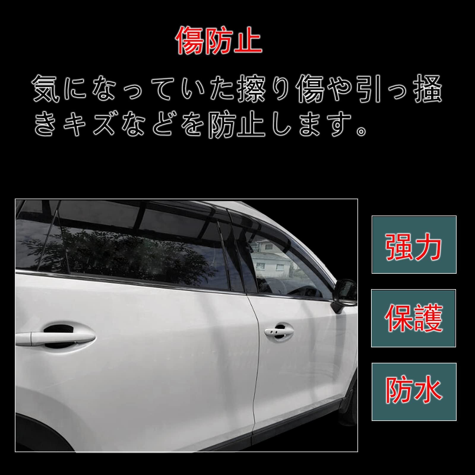 ●商品利点:気になっていた擦り傷や引っ掻きキズなどを防止します。装着の後、ドアハンドル保護フィルムは 指輪などによる傷を防止することで、大切なご愛車をしっかり守ります。