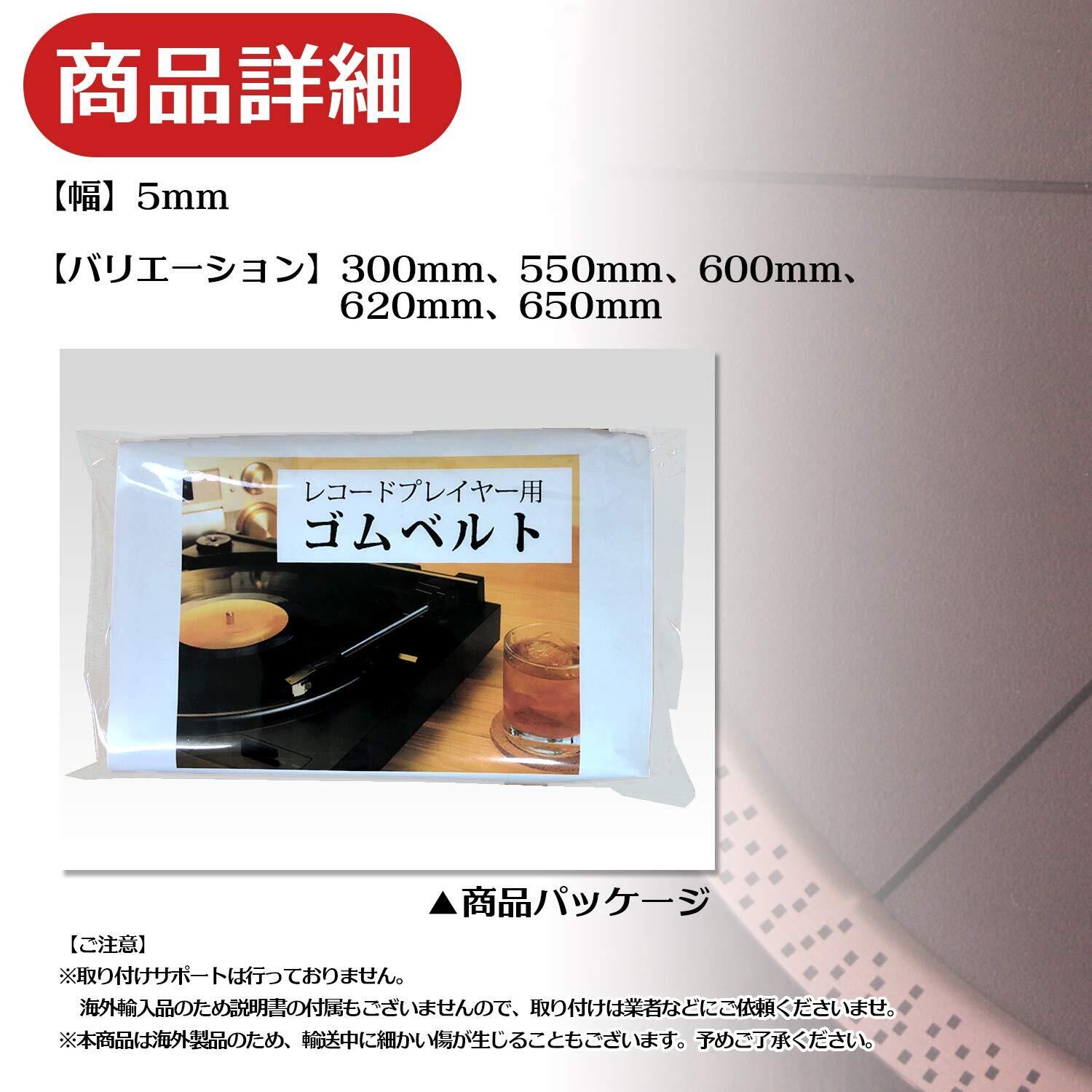 【厚さ】約1mm【幅】5mm 【バリエーション】300mm、550mm、600mm、620mm、650mm。このレコード プレーヤー ゴムベルトは、あらゆるレコードのニーズに対応します。