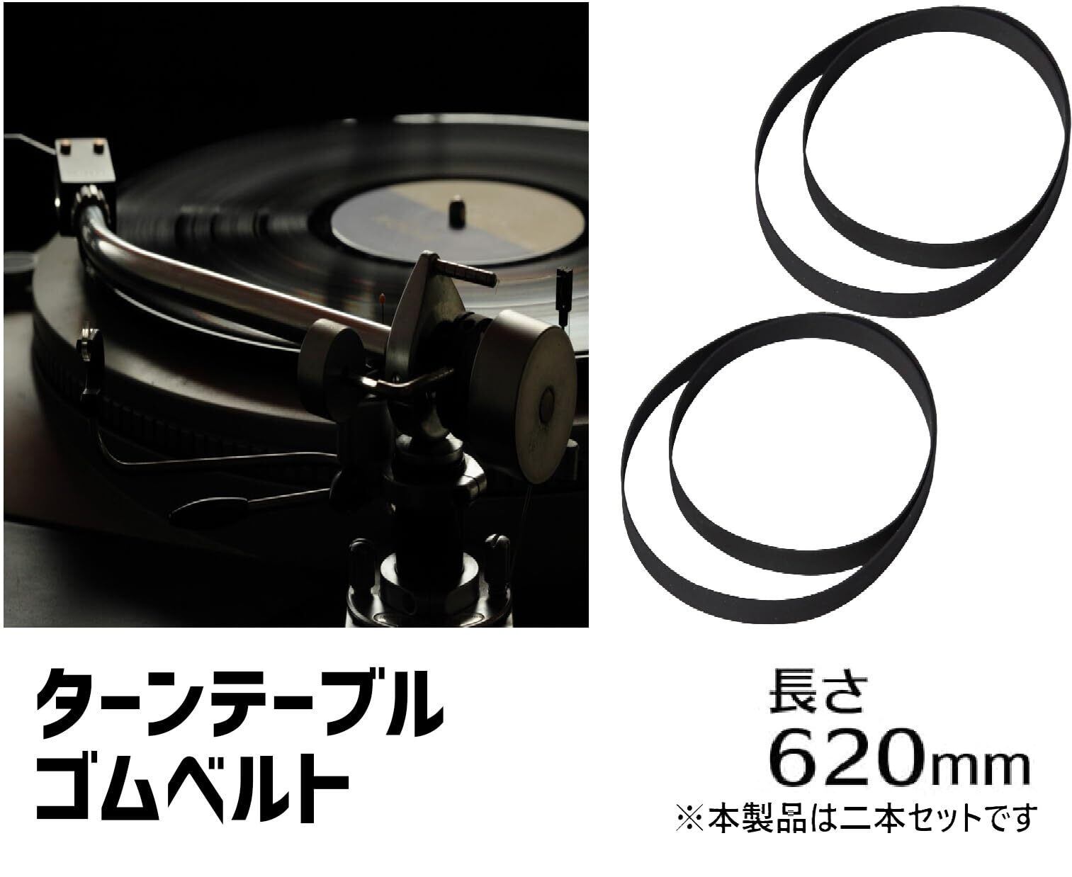 (エスネット) レコード ターンテーブル プレーヤー 交換 修理 用 ゴム 平 ベルト 回転 汎用 厚さ 約1mm 円周 300mm から 650mm 取説 無し SN-246-TG (620mm×2)