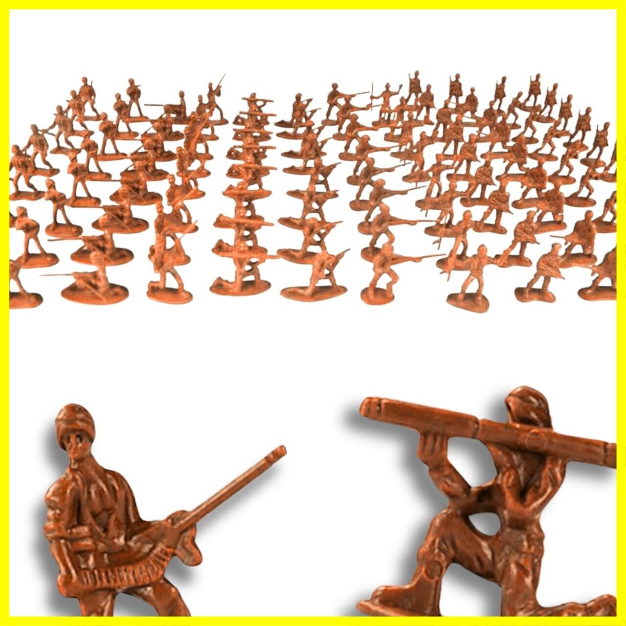 兵士フィギュアが100体:この軍隊フィギュアセットは、兵士フィギュアが100体揃ったコレクションで、12種類のフィギュア種類で様々なポーズや装備を再現、豊富なバリエーションが実現