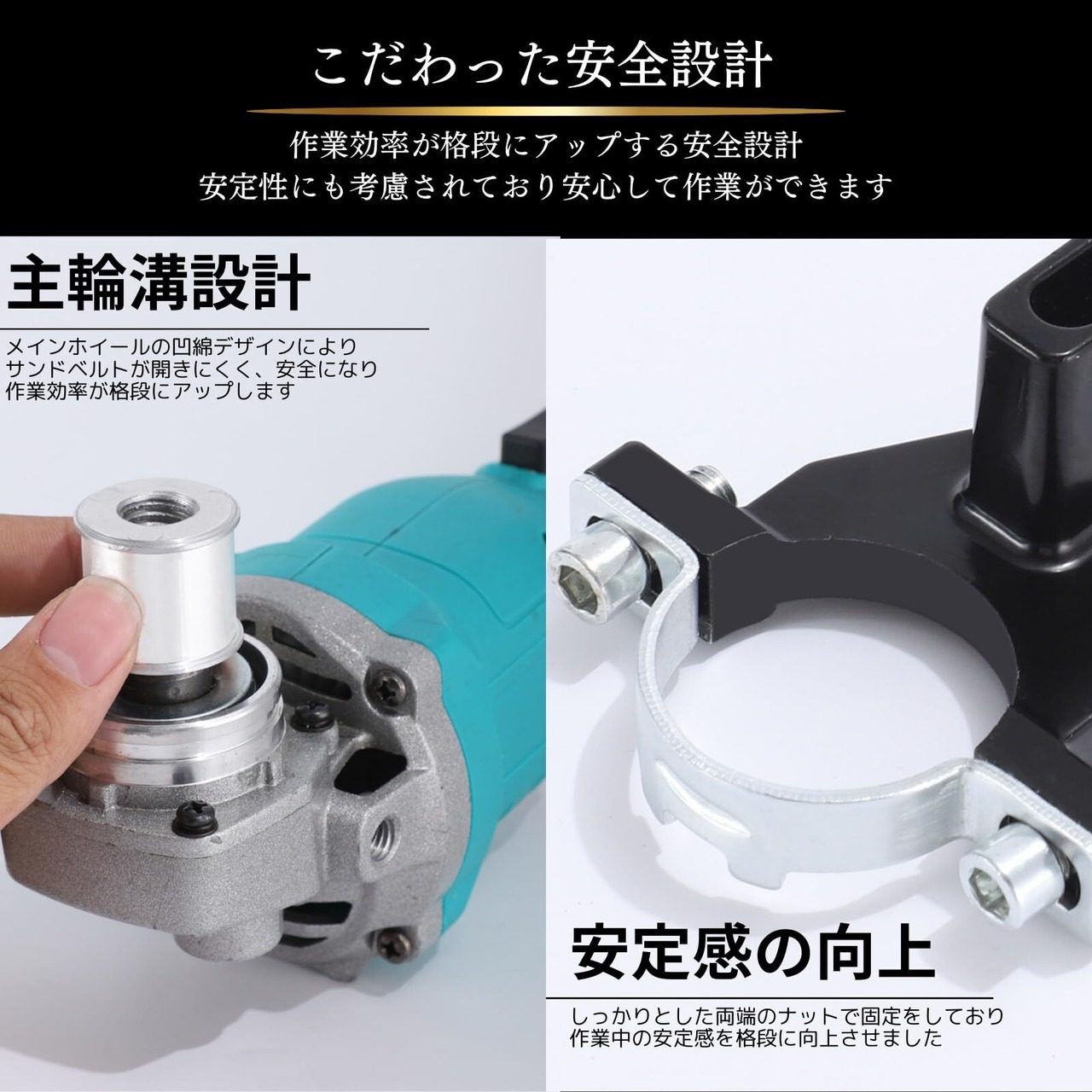 この「電動ベルトサンダーグラインダーアタッチメント」は、デュアルベアリング設計でスムーズなサンディングが実現します。取り付けも簡単で、しっかり固定されるので安定感抜群。あなたのDIYプロジェクトが一気にレベルアップ!
