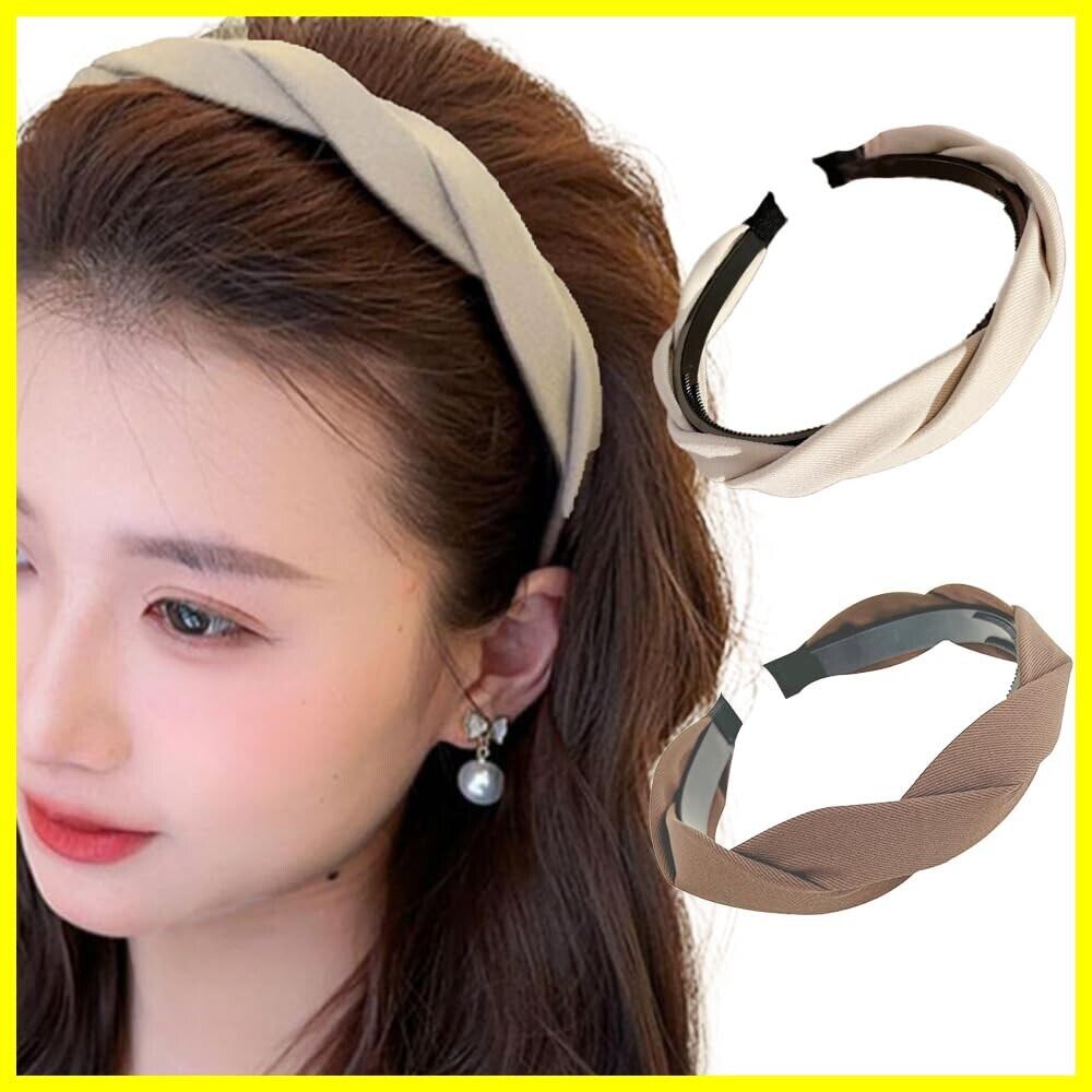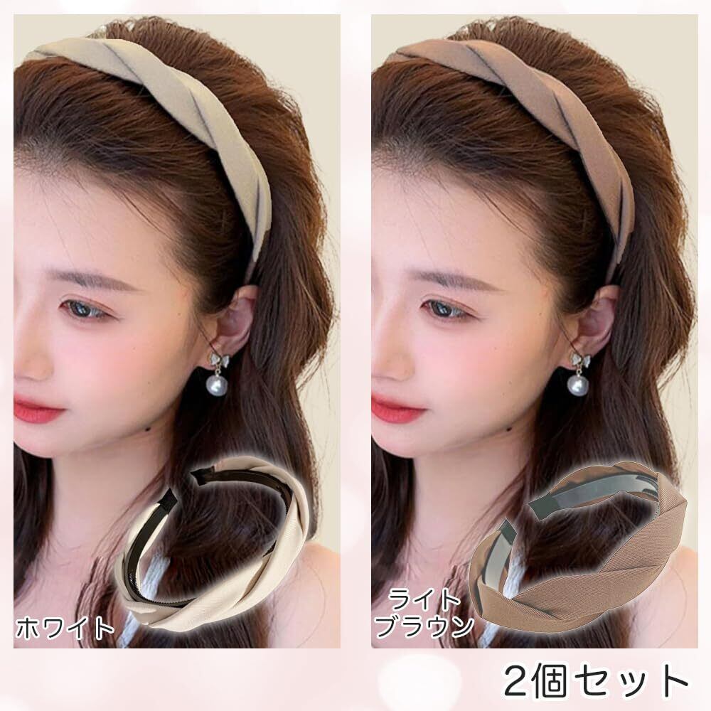 ロドリーミシェ カチューシャ レディース 痛くない ヘアバンド オシャレ シンプル 幅広 コーム付き カワイイ ヘアアレンジ ツイスト 編み込み風 ヘッドバンド 韓国 No88 ホワイト ライトブラウン