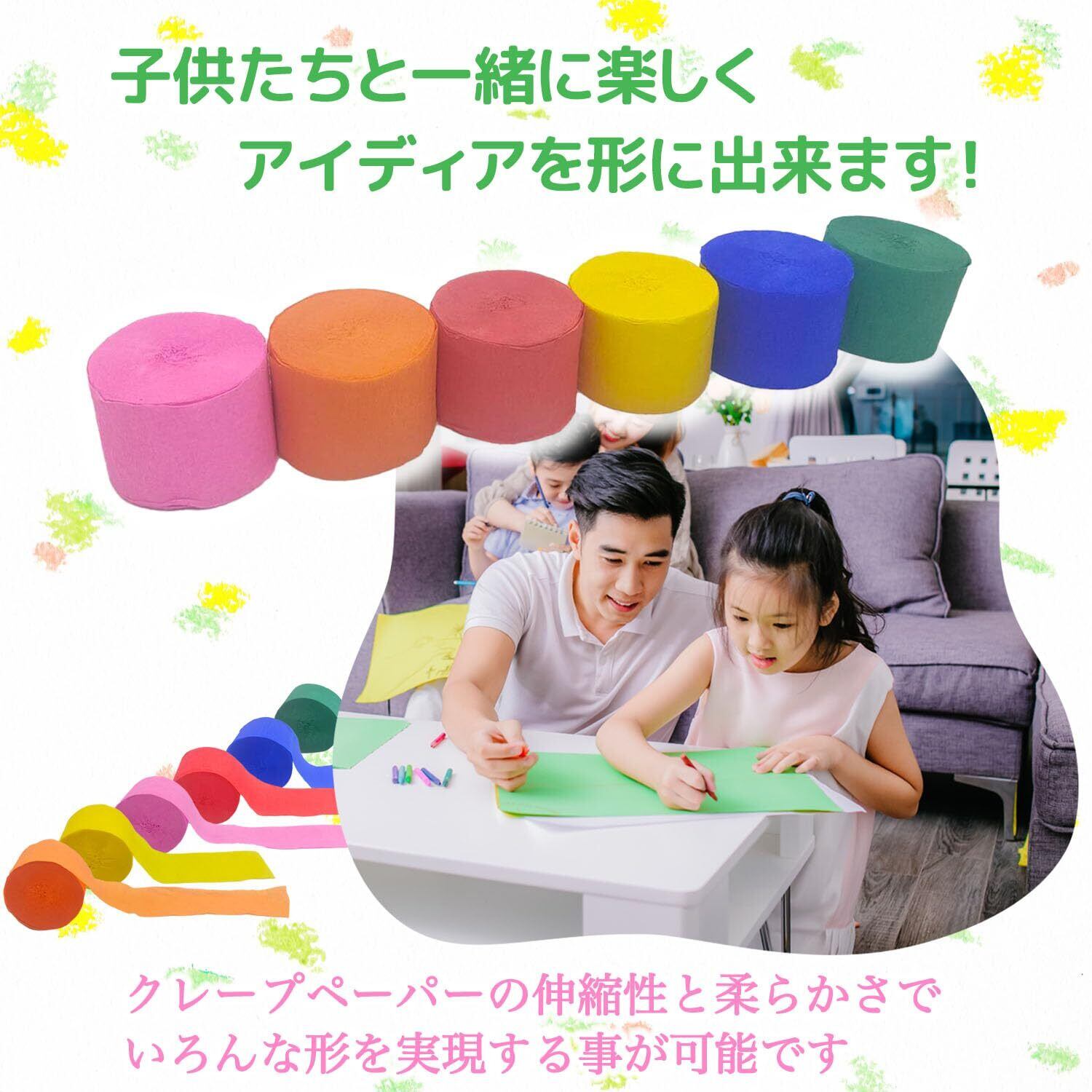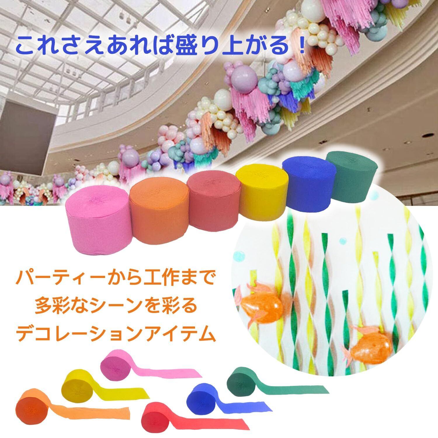 【6色の豊富なカラーで飾りつけ】レッド、オレンジ、イエロー、ブルー、グリーン、ピンクの色彩が鮮やかに輝きます。6色のロール型になっていて使いやすさにも配慮されています。カラフルなクレープペーパーで、明るく楽しい雰囲気を作れます。
