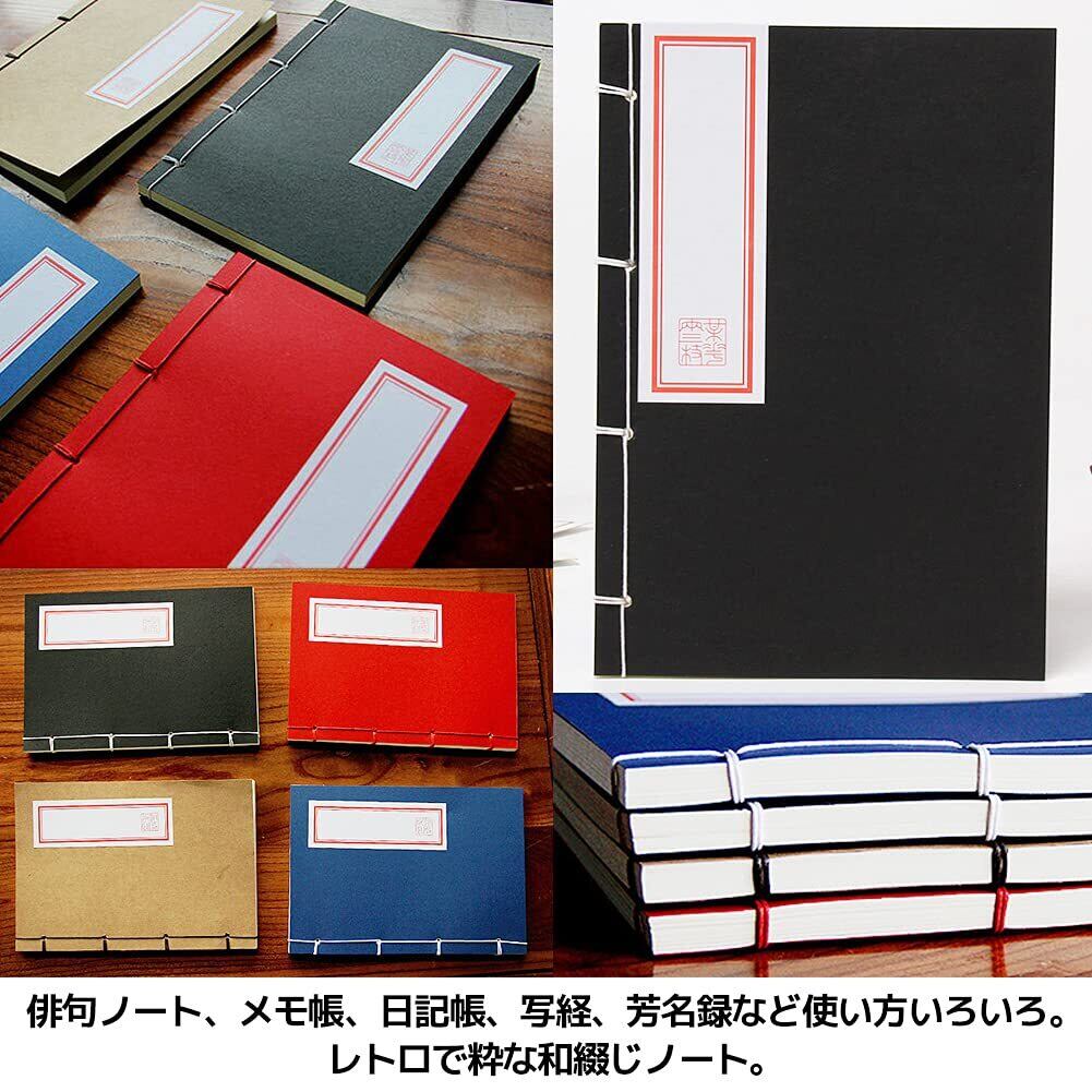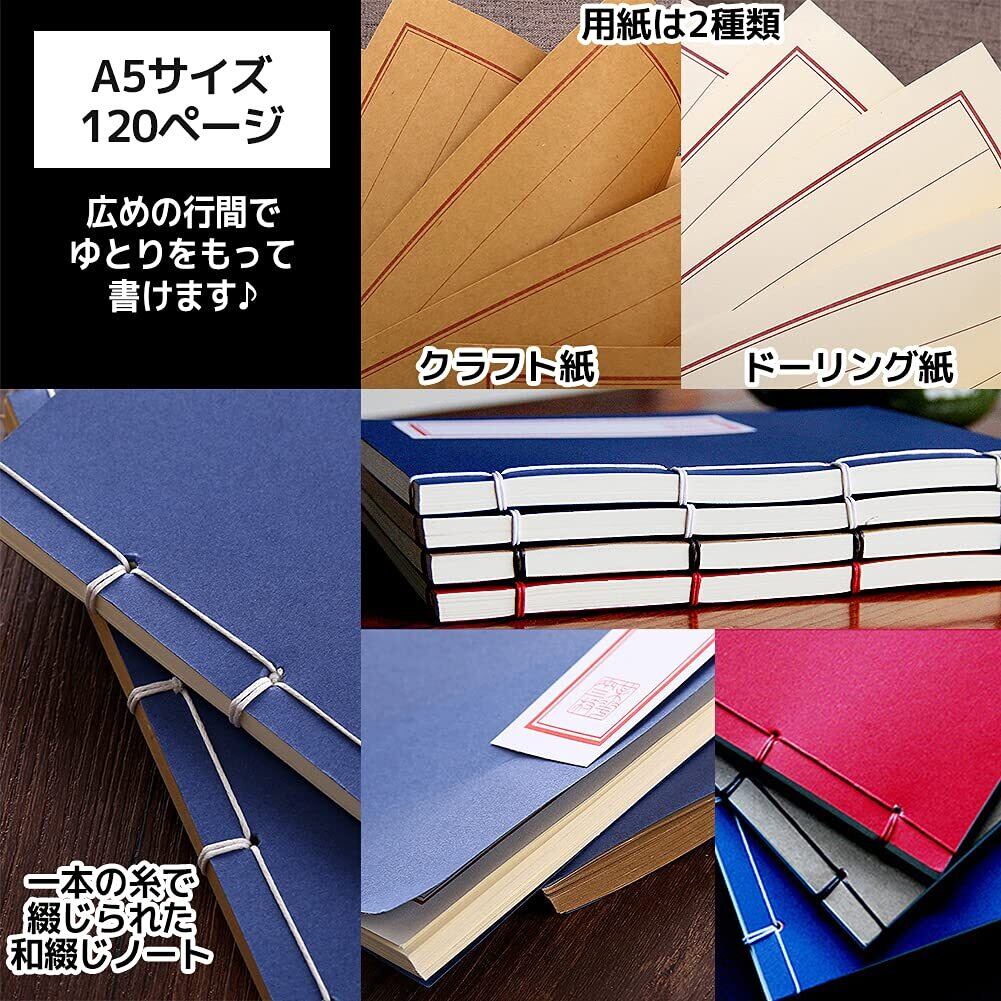 [FUPUTWO] ノート 和綴じ本 A5 縦書き 自由帳 日記帳 俳句帳 120ページ 4冊セット (ドーリング紙)