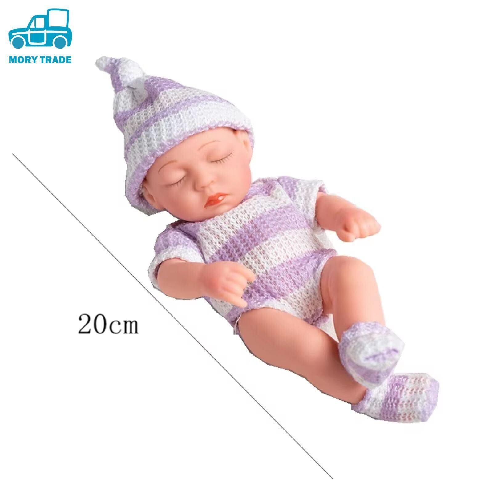 手のひらサイズの可愛いベビードール。赤ちゃんのようなリアルな表情と、ふんわり優しい服が特徴です。お部屋のインテリア、ギフトにもおすすめです。
