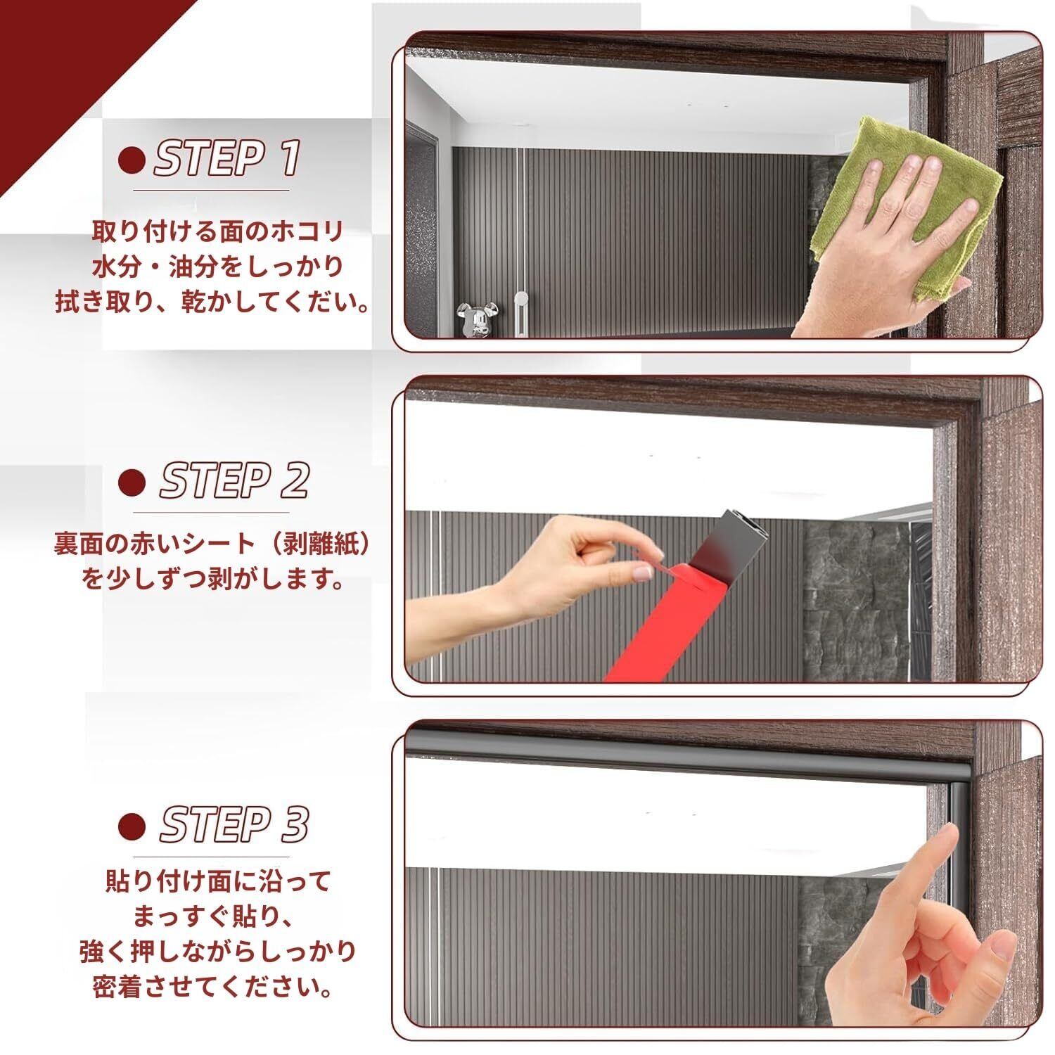 【簡単な取り付けで便利】このシリコンテープは、約6mの長さがあり、カットしてお好みのサイズに調整して使用できます。取り付けも簡単で、手軽にお使いいただけるため、DIY初心者の方にもおすすめです。お住まいの環境を手軽に改善できるチャンスです!