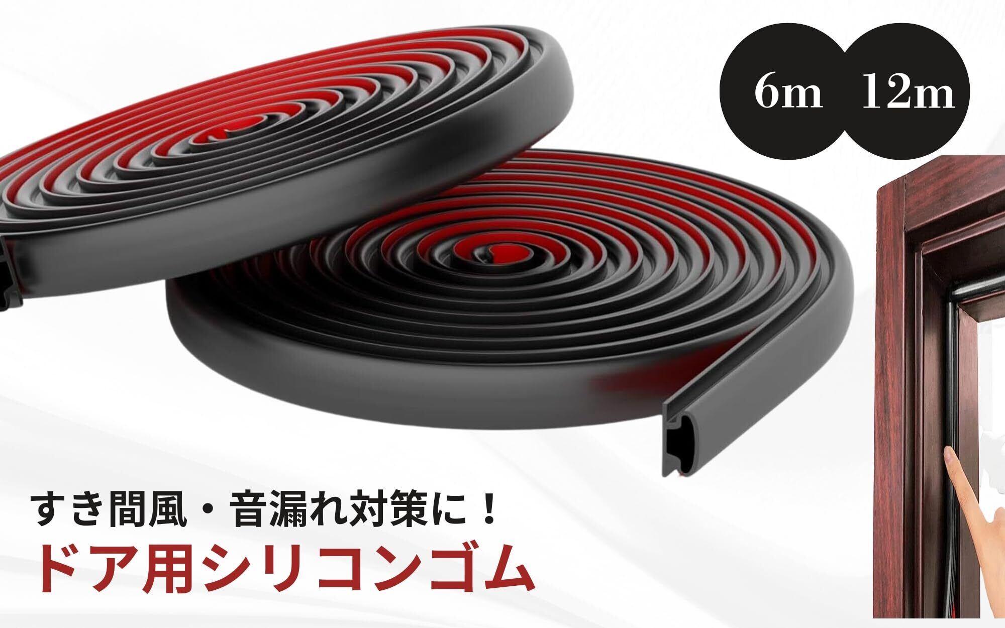 [Crystal craft] 防音材 ドア シリコンテープ 隙間 スキマ風防止 ドア1枚分 6m 【ブラック】