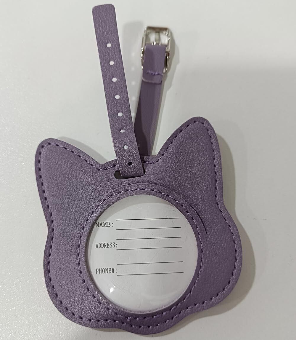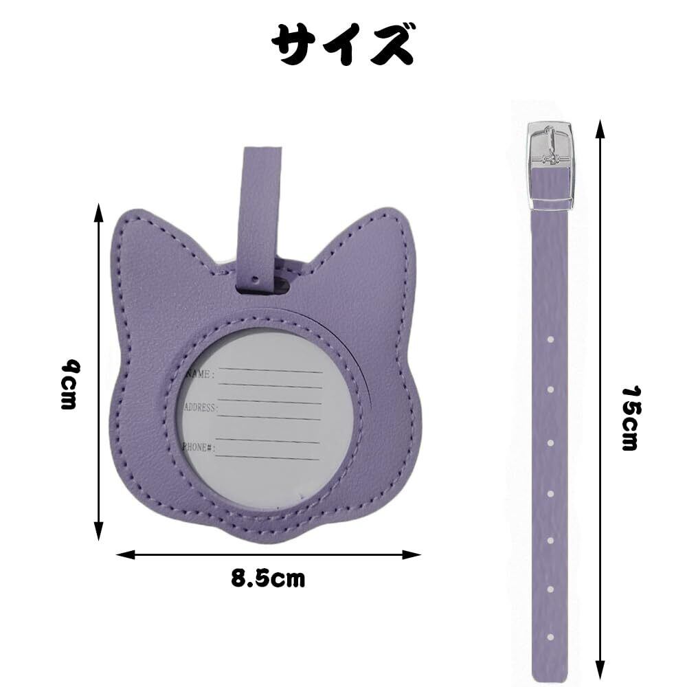 猫 ネームタグ バッグタグ 荷物タグ スーツケースタグ PUレザー 可愛い 軽量 柔軟 耐用 取り外し簡単 旅行タグ 紛失防止 お子様バッグ/スーツケース/スポーツバッグ 通用 旅行 出張用 (パープル)