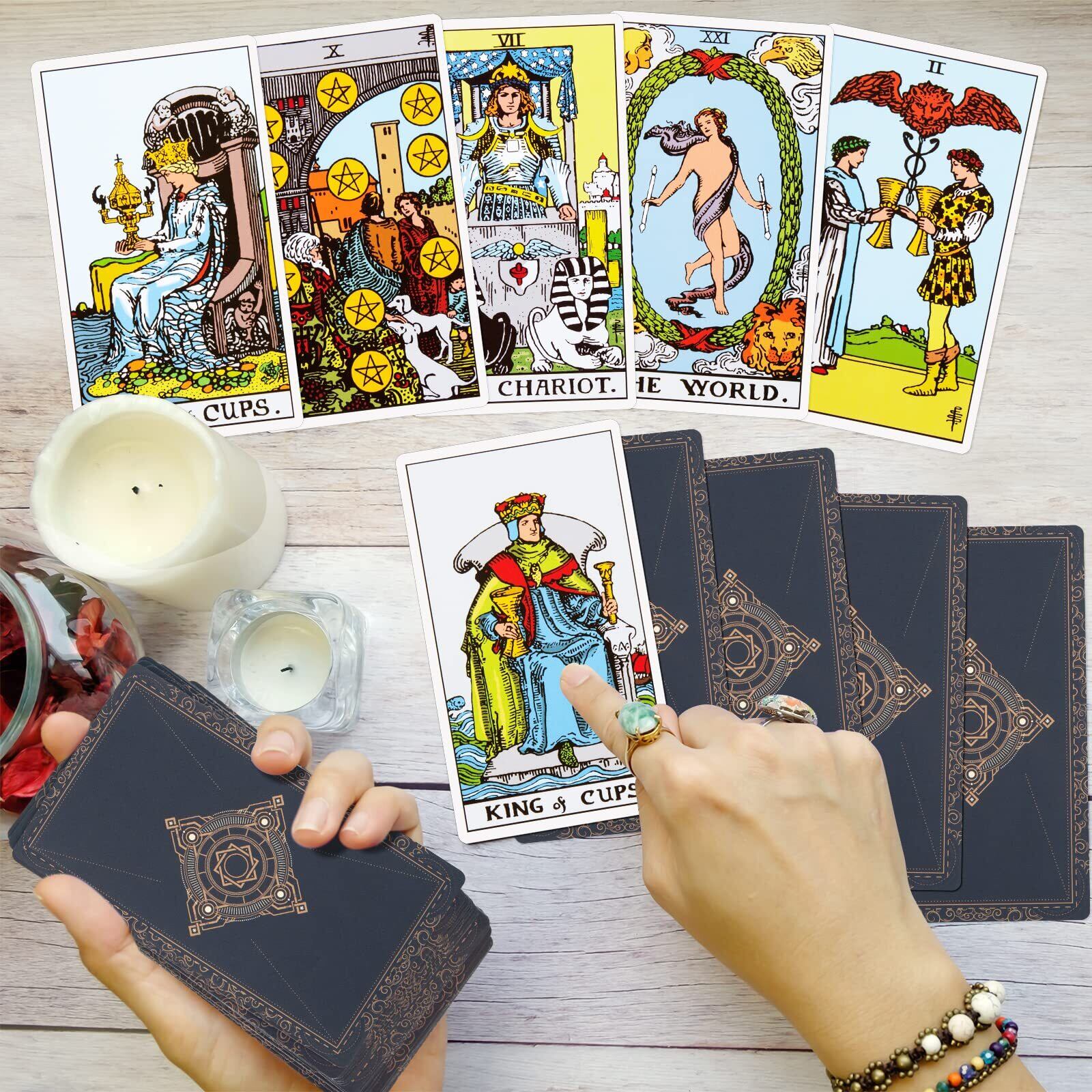 スタイル: 伝統的な「Rider Waite 」をベースに、落ち着いた色合いで、古典的な雰囲気があるタロットカードです。わかりやすく、初心者から熟練者まで人気があります。
