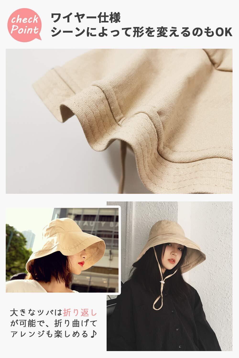 つばにはワイヤーが入っているので、つばは好きなところで折り曲げれるので、前が見えない心配はありません。ナチュラルでエレガントな雰囲気もパッチリ!