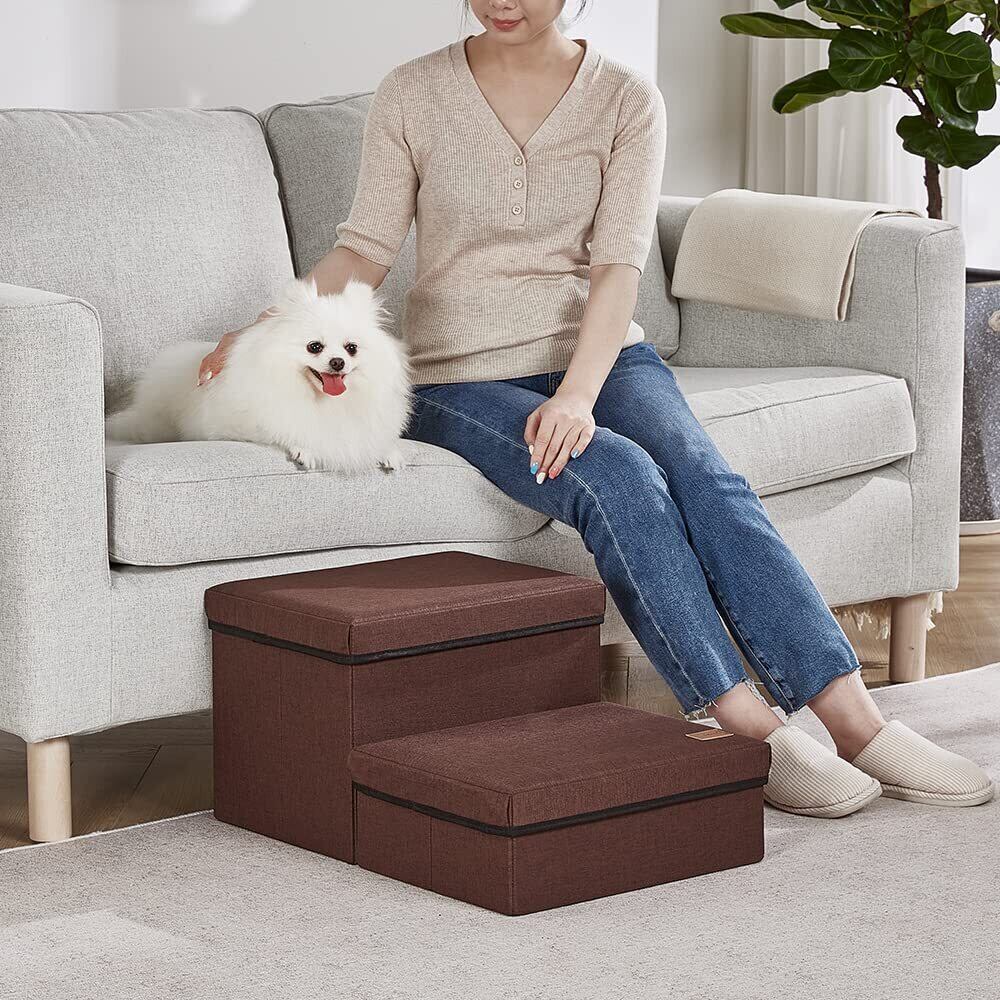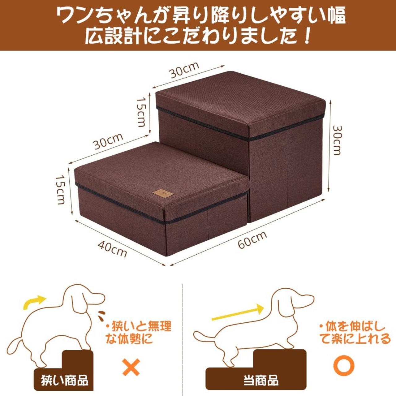 ドッグステップ 犬 ペット用階段 2段 奥行大幅に広く改善 ペット ステップ 耐荷重30KG 折り畳収納 ヘルニア 小型犬 老犬介護 ケガ防止 滑り止め (2段-ダークブラウン)