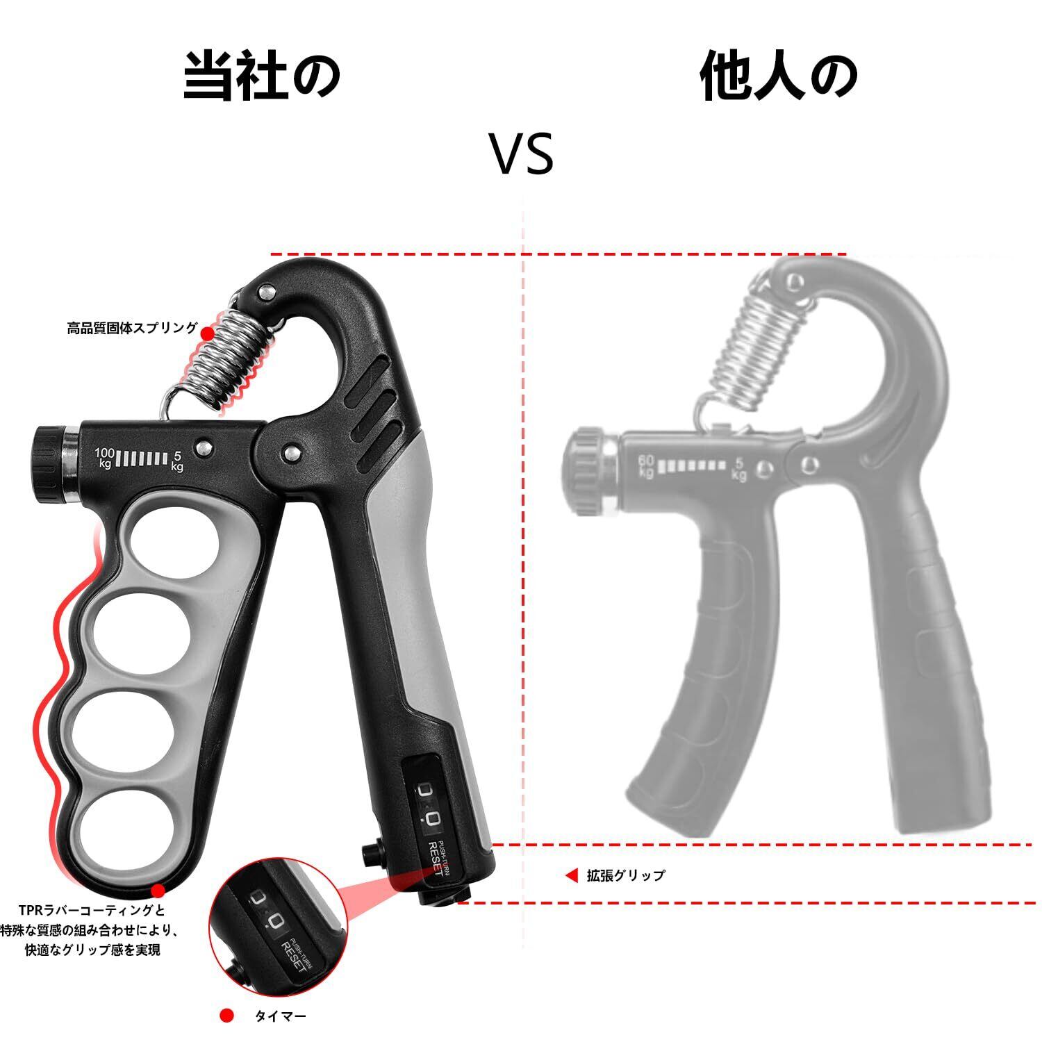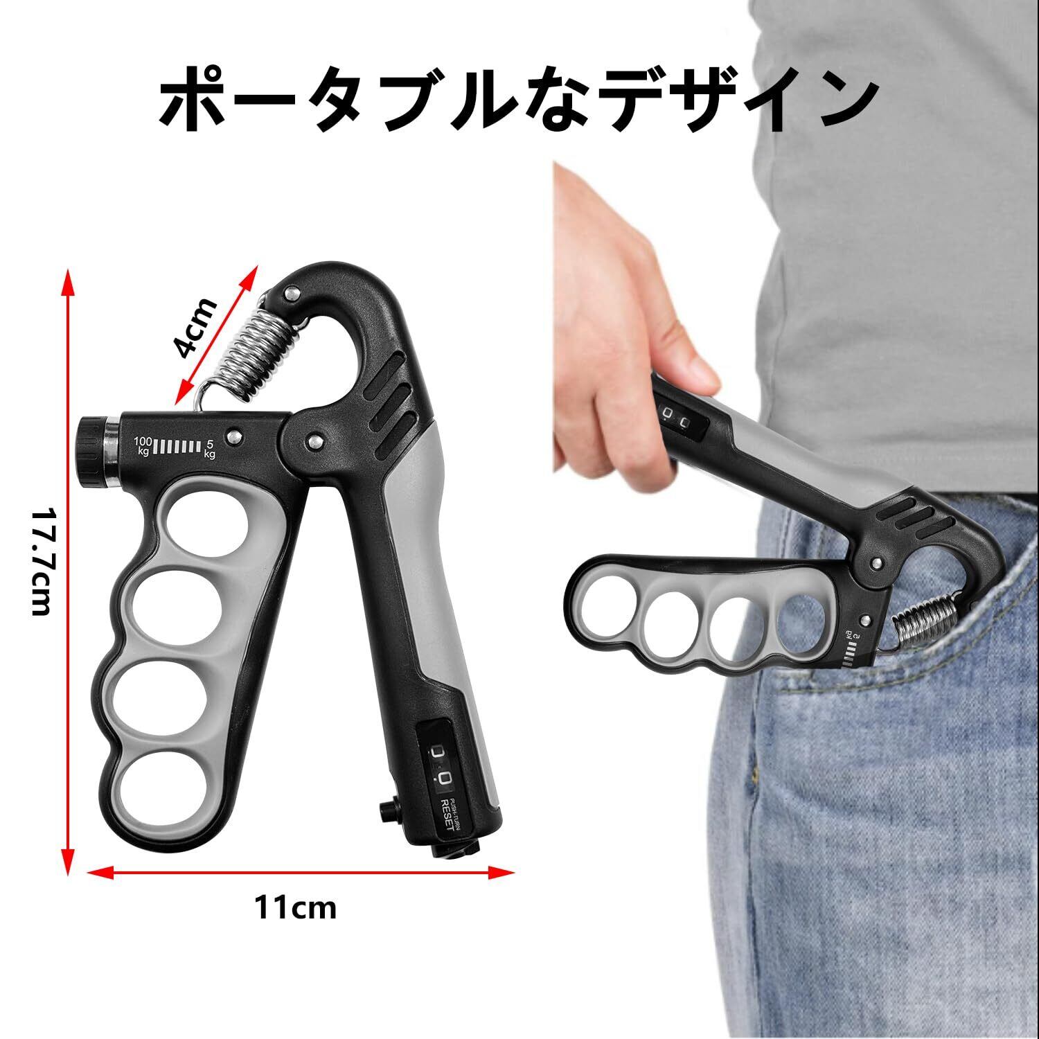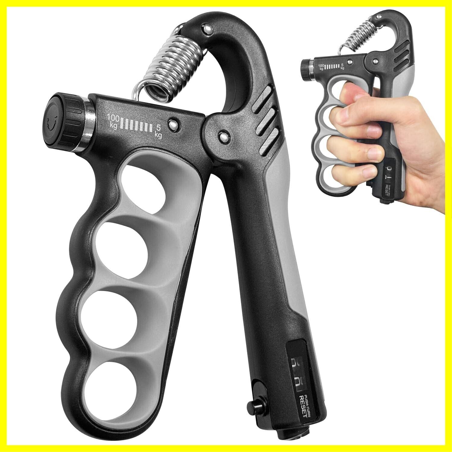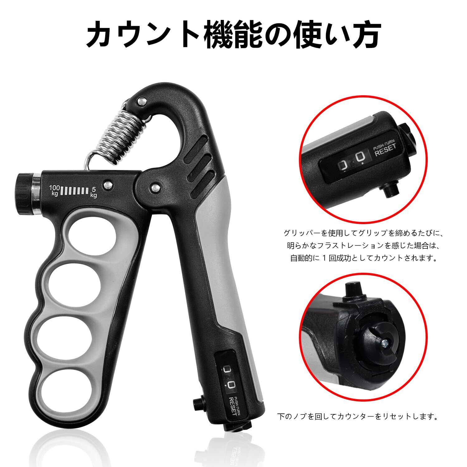 握力 トレーニング ハンドグリップ 筋トレグッズ 5-1000kg カウンター付き 負荷調整可能 男女兼用 黑灰色