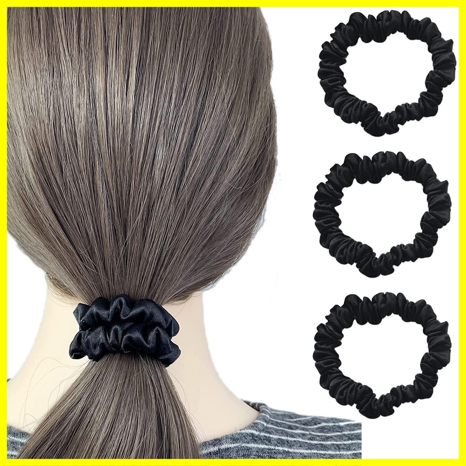 YINKE ヘアゴム シュシュ シルク 髪ゴム 跡がつかないヘアゴム 髪留め 髪ゴム ヘアリング 髪束ね おしゃれ 大人 簡約 高弾性 シンプル 3個セット (ブラック)