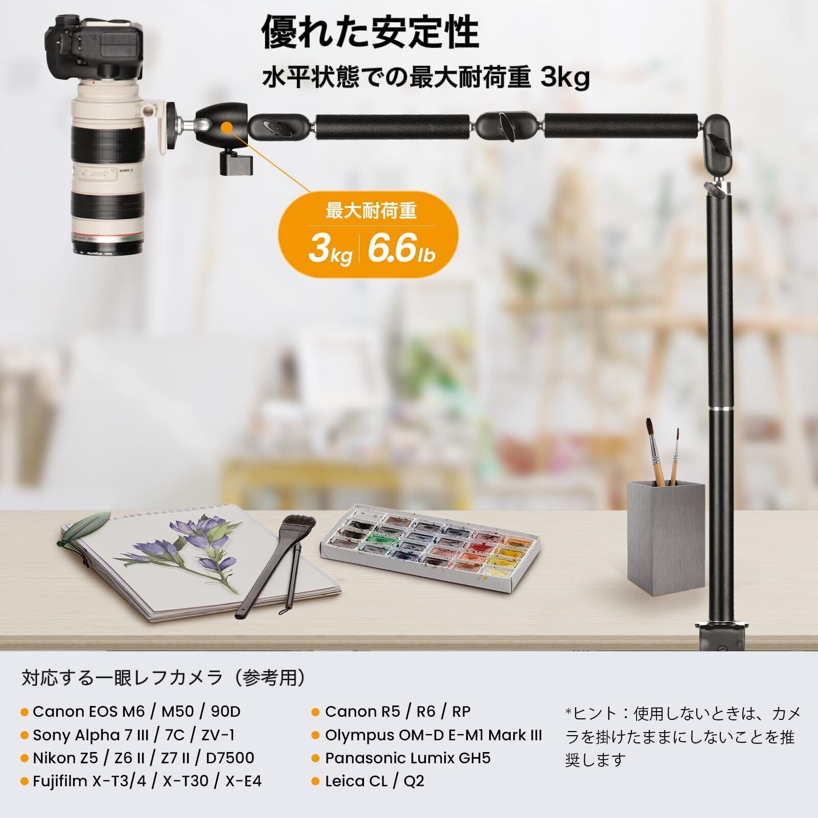 【2023最新品折りたたみ式一眼レフカメラアーム】耐荷重が3KGまでになり、一眼レフカメラ、デジタルカメラ、ビデオカメラなどが問題なく装着できます。