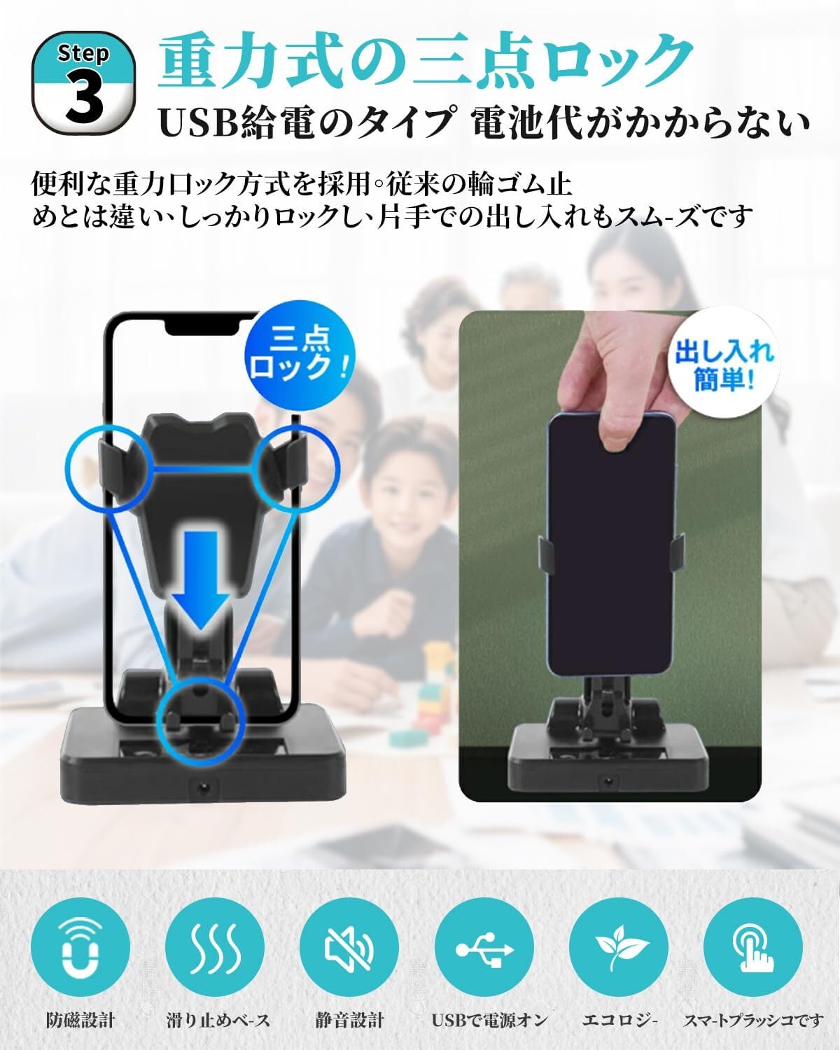 【低噪音設計】低噪音設計なので、夜間も気兼ねなく使えます。従来品の騒音問題を改善するため、装置のスタンド方法を変えて、不快な音が出さないベアリングを採用する。振り子 スマホは雑音がなく、オフィス、ベッドルームなどの場所でも楽に利用できる。