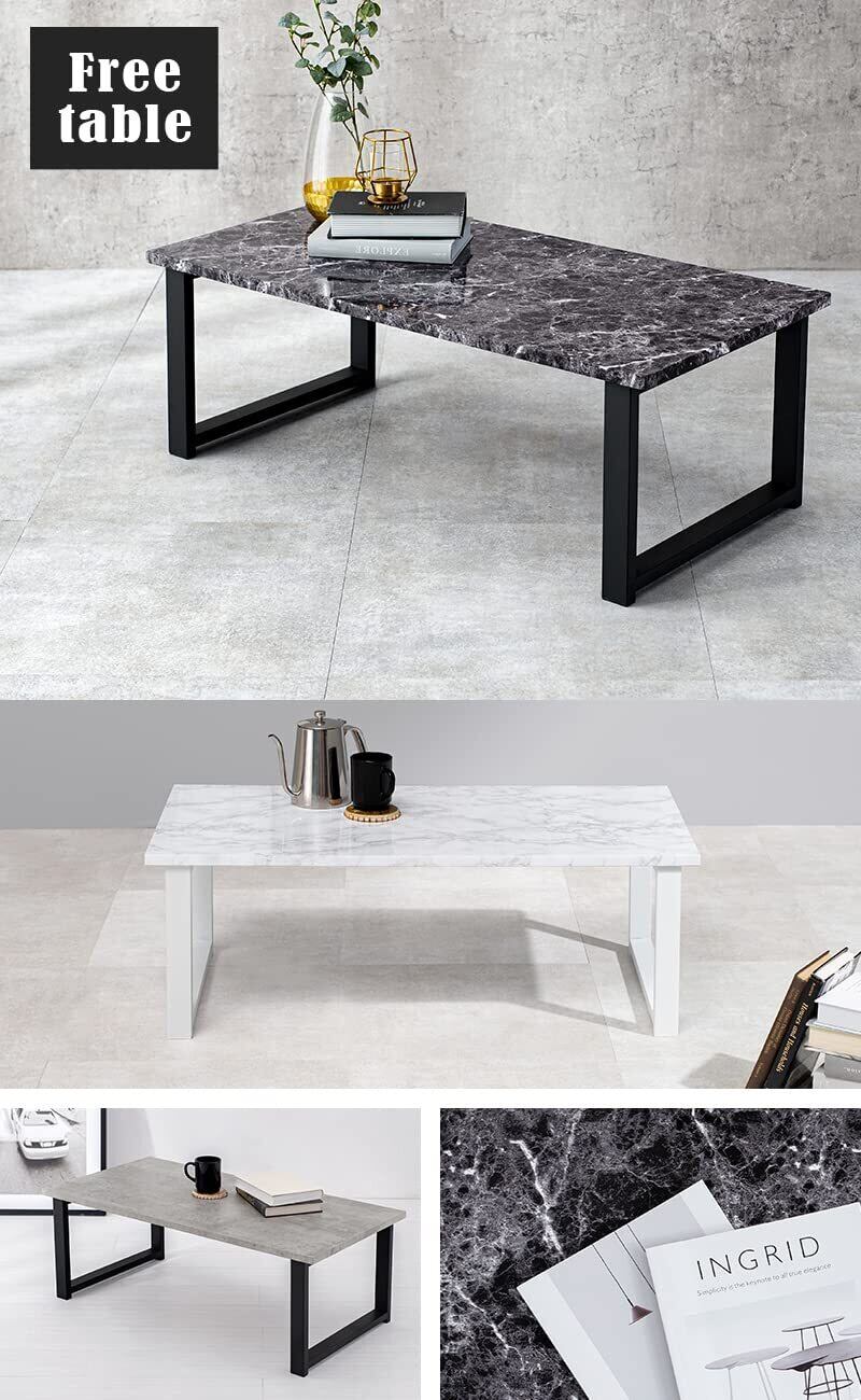 【異素材の組合わせでデザイン性UP】:リアルで本物に近い大理石調シート張りの天板と耐久性に優れたスチール脚がインテリアとしての存在感を発揮。