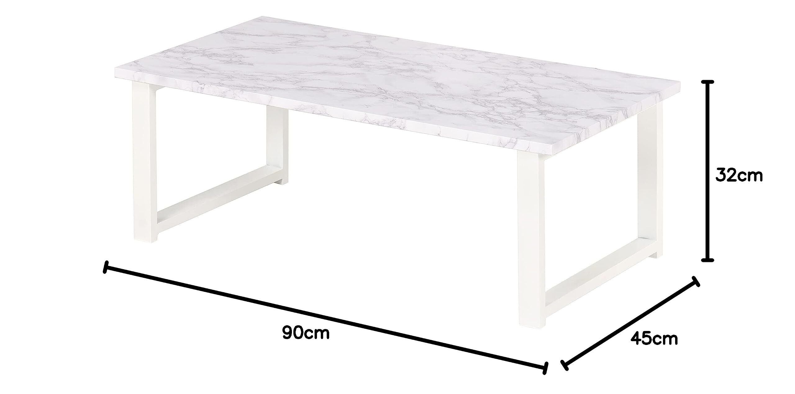 萩原(Hagihara) ローテーブル センターテーブル テーブル 机 【大理石調天板×スチール脚】 シック モダン リビング ソファテーブル 幅90 奥行45 高さ32 ホワイト 白 頑丈 LT-4394MWH