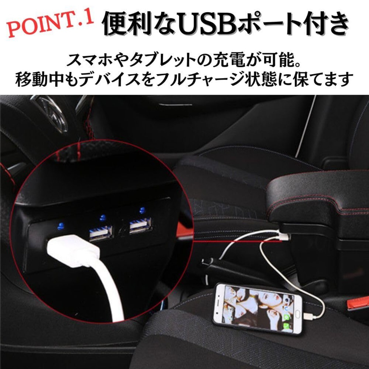 マツダ CX-3 DK5/デミオ DJ3 DJ5 対応 アームレスト コンソールボックス USBポート付 (レッドライン)