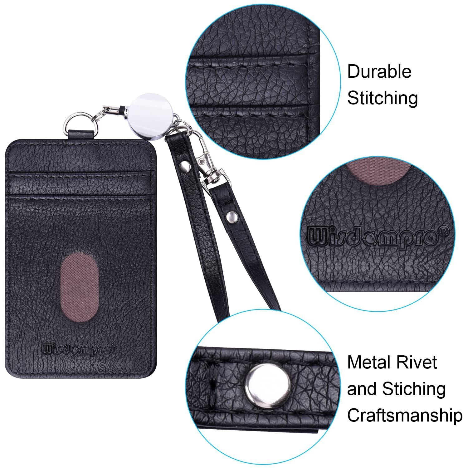 Wisdompro パスケース 定期入れ リール付き 縦型 両面 ID/ICカードケース 社員証ケース ネームカードホルダー PUレザー 通勤 通学 メンズ レディース ブラック