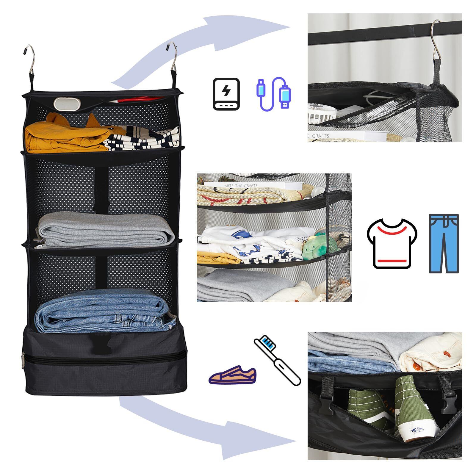 クローゼット 吊り下げ収納 4段 【防水旅行版】 インナーバッグ 大容量 衣類ラック 収納/旅行/出張 帽子/鞄 取付簡単 省スペース 折り畳み式 (X-Large, ブラック)