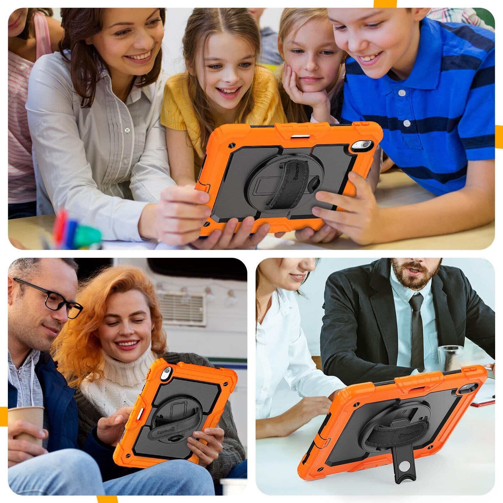Timecity iPad Air 11インチ ケース (2025新モデル) 耐衝撃 三層保護 360回転スタンド 保護フィルム ハンド&ショルダーストラップ ペン収納付き 仕事 現場 傷防止 頑丈 2025/2024 iPad Air 11インチ ケース M3/M2チップ 保護カバー (オレンジ)
