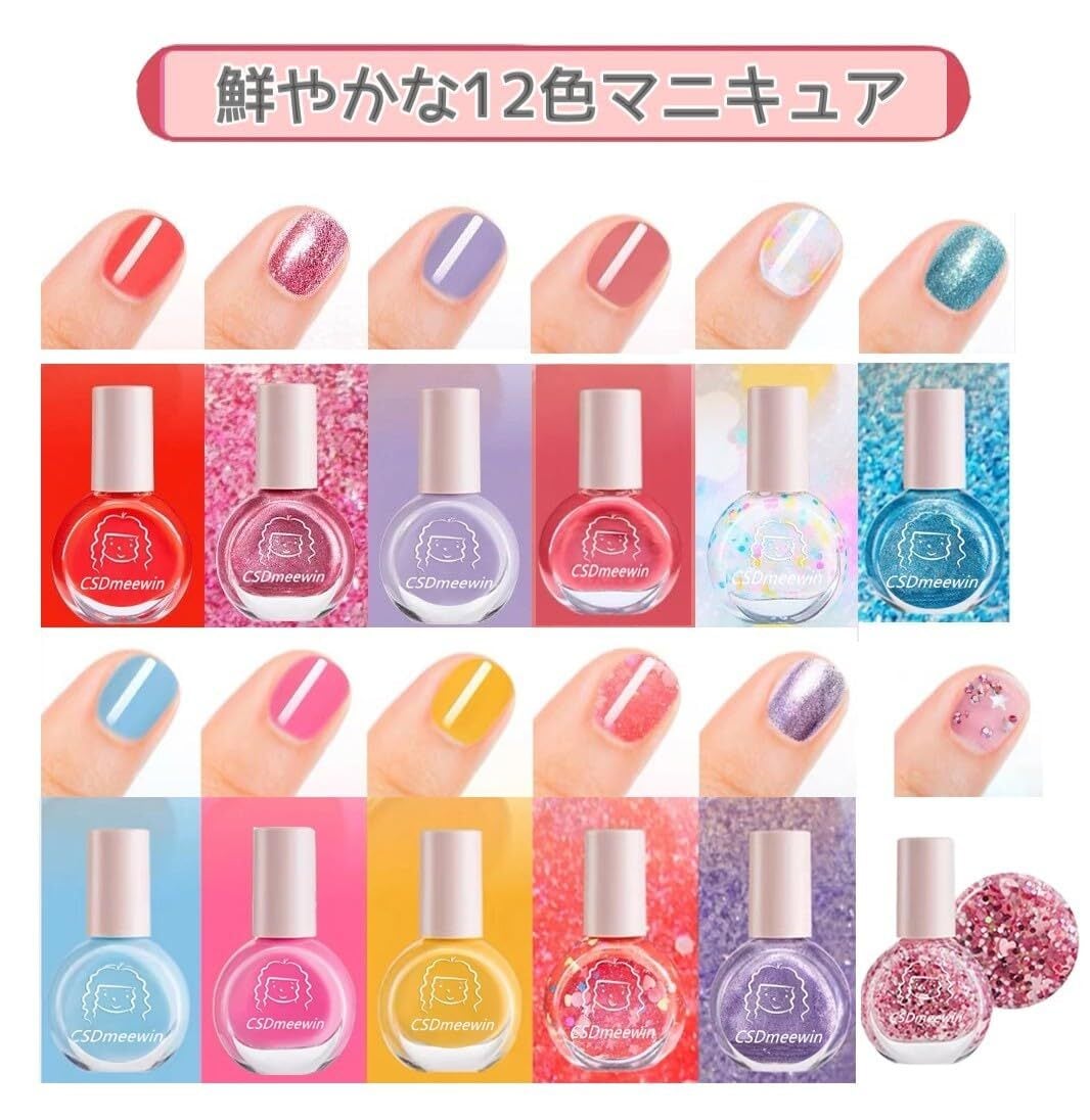 マニキュア 子供用 はがせるタイプ ネイルポリッシュ ネイルアート用品 12色セット トップコート お誕生日 プレゼント用